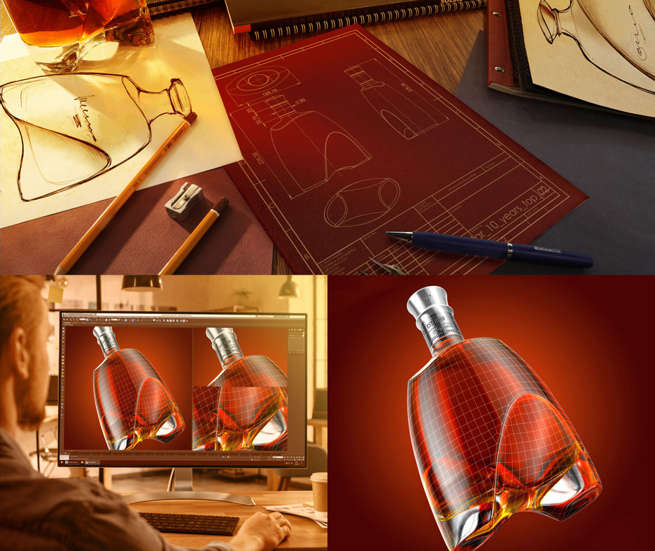 Асимметричная форма дизайна стекла бутылки в основании дна напоминает ленту Мебиуса. Сочетание двух драгоценных металлов (золота и платины), металлизированная этикетка, форма и элегантный декор колпака подчеркивают высокий ценовой сегмент бренда и отражают идею баланса современности и классики, изменчивости и постоянства.