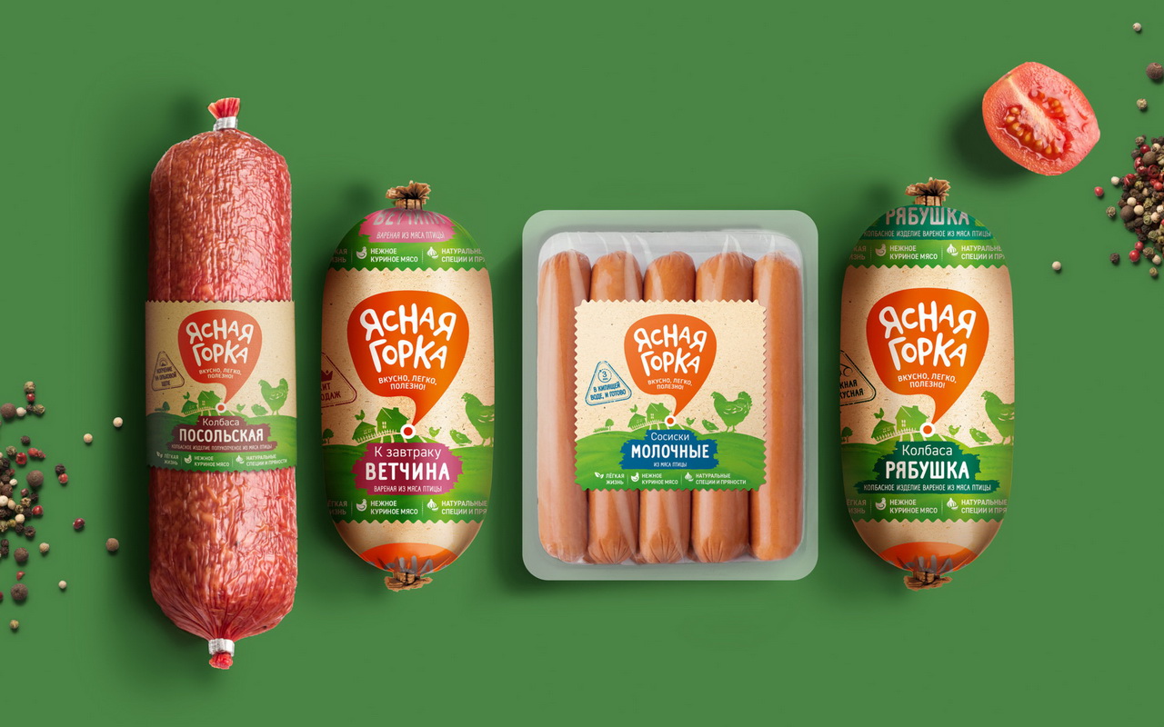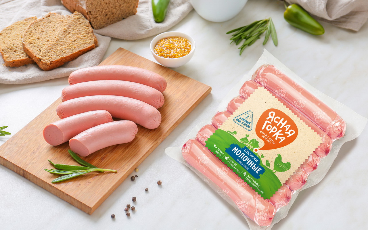 Во всем мире наблюдается глобальный тренд на уменьшение потребления красного мяса и преобладание в рационе продуктов из мяса птицы. Поэтому клиент ставил перед собой амбициозную задачу покорить российский рынок с новым брендом. Понимая, что придется соперничать и с местными производителями, к которым у покупателей априори больше доверия из-за локальности брендов, дизайн должен вызвать лояльность и желание попробовать новый продукт. Из предложенных названий было выбрано название Ясная горка — позитивное и яркое, создающее ощущение «своего» продукта, так как в любой местности есть горка, и в сочетании со словом «ясная» возникает ощущение чистоты, безмятежности, природности и экологичности.