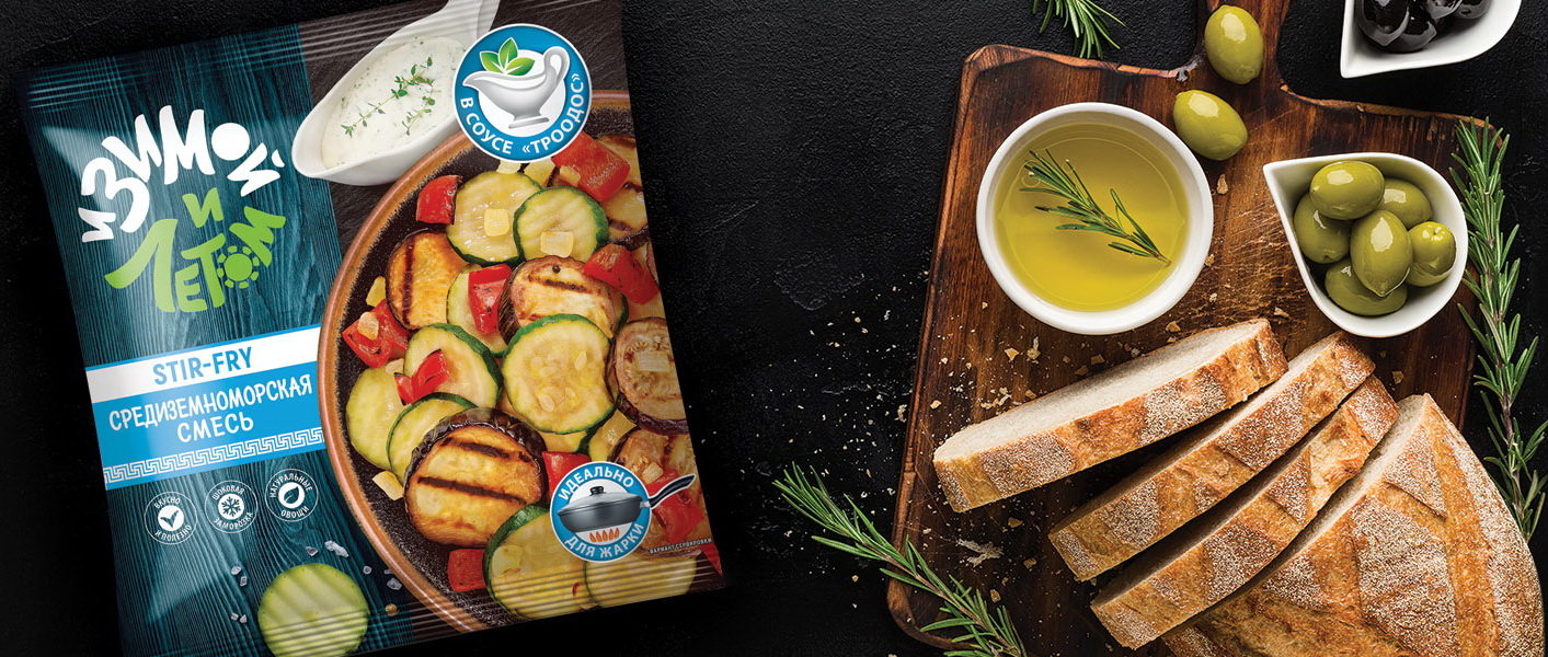 Stir-Fry — это техника быстрого обжаривания продуктов в раскаленном масле при постоянном помешивании. Под этим названием ГК «ЮЖ» объединила новую линейку замороженных смесей с соусами. Поскольку смеси объединяет наличие соуса и конкретный способ приготовления, необходимо было визуально отделить их от базового ассортимента бренда.