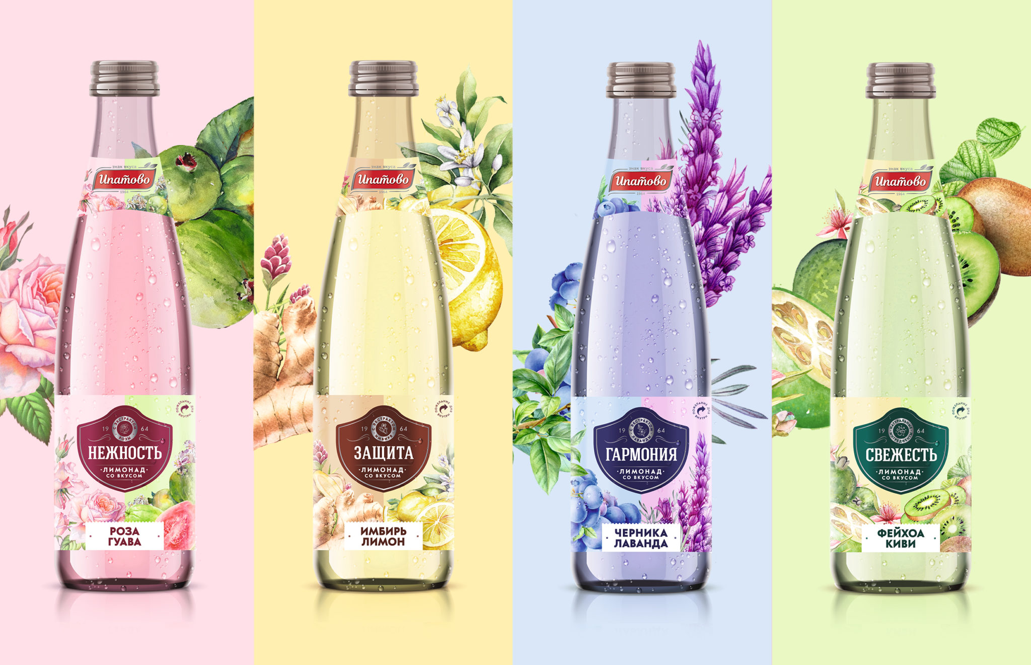 Давний клиент Getbrand Ипатовский пивзавод обратился в агентство за разработкой новой линейки лимонадов под единым брендом Ипатово. Для новой линейки были разработаны 4 вкуса с максимально натуральным составом. Дизайн должен был вызывать ощущение, что напиток дает энергию и повышает иммунитет.