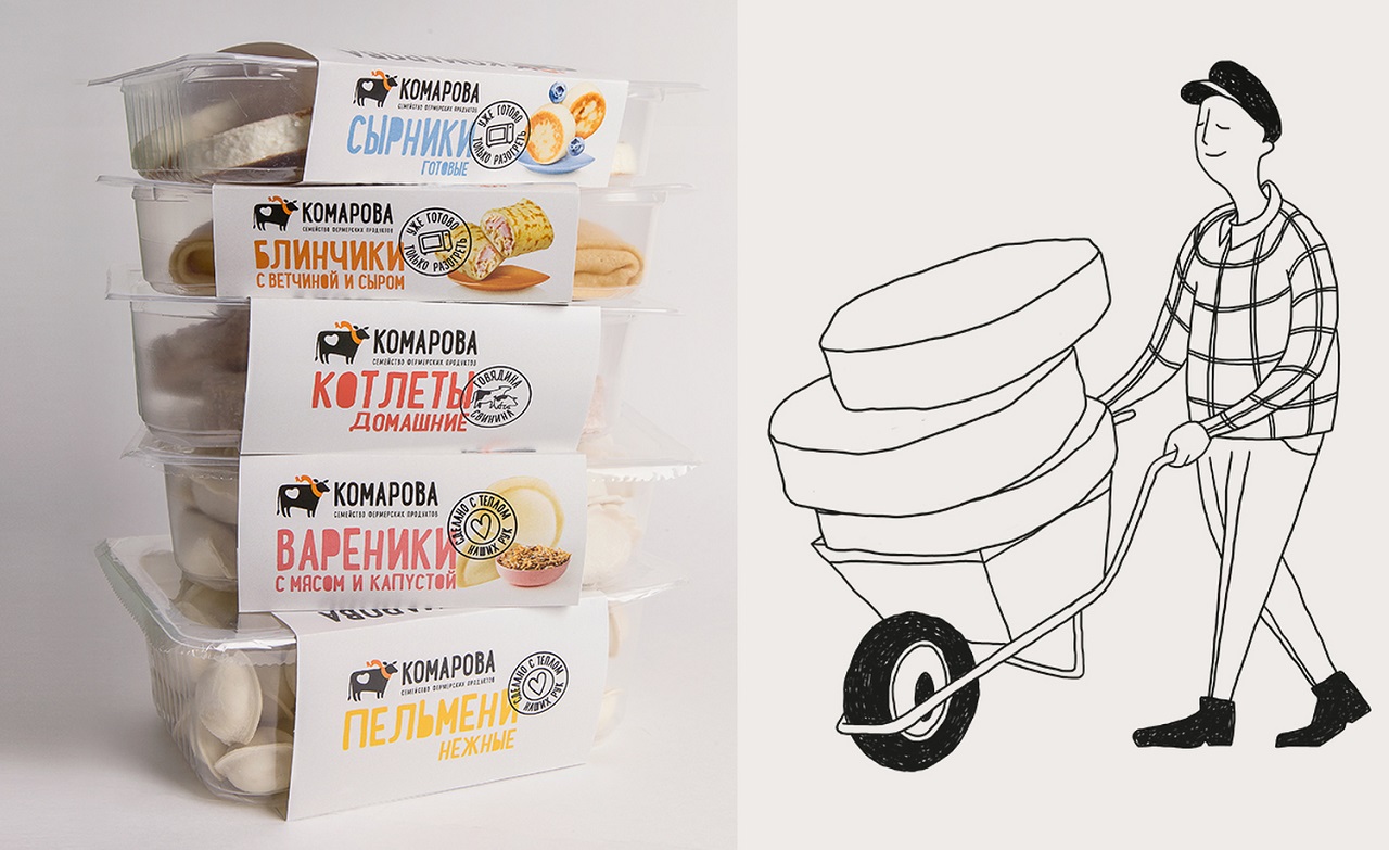 В Магадане хорошо знают семью фермеров, которая производит настоящее молоко, мясо и полуфабрикаты вручную. Фермеров, которых можно встретить на улице, дизайнеры решили сделать фирменными персонажами.