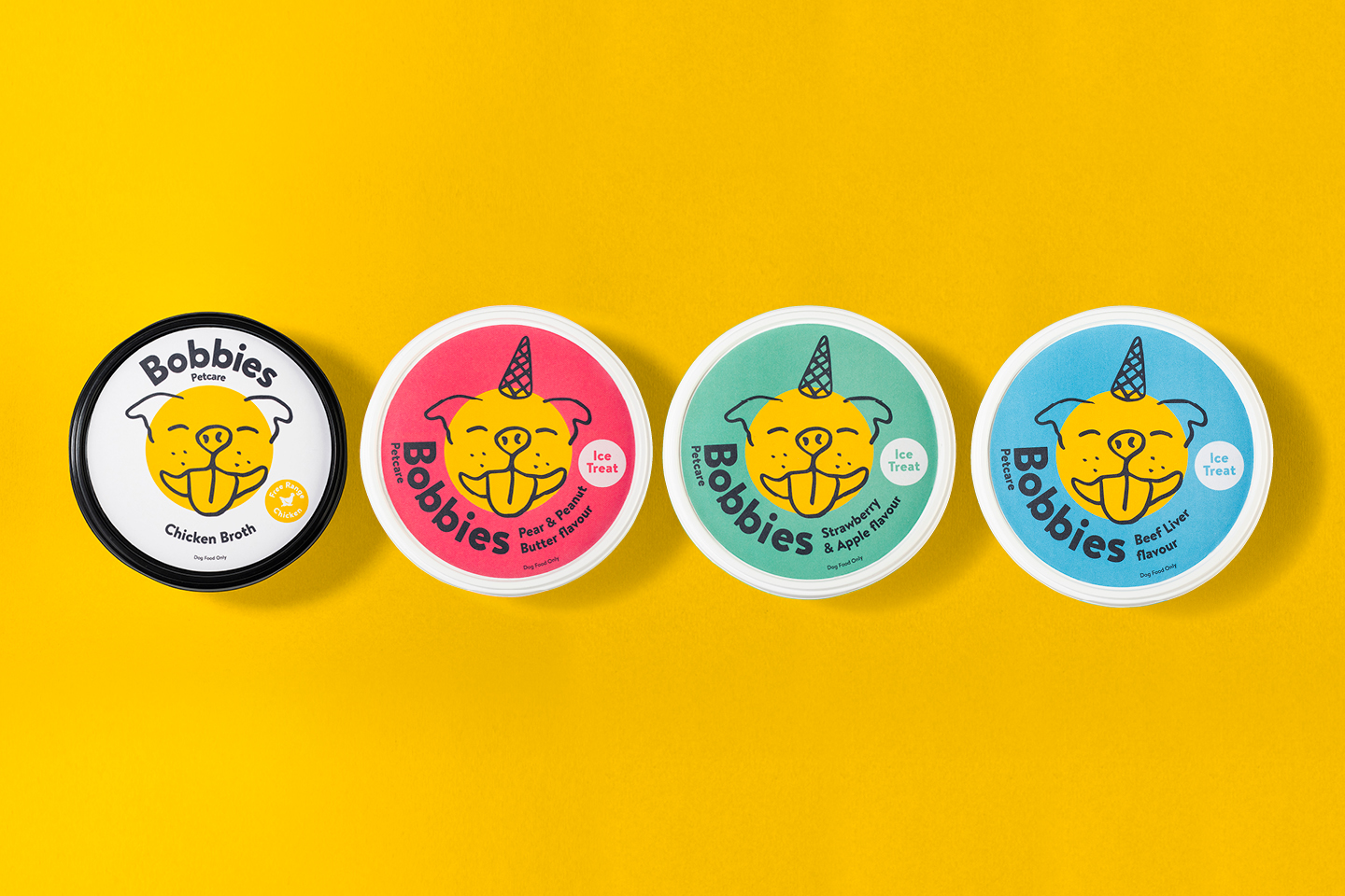 Это инновационный бренд кормов для животных, который производит полезные угощения на радость питомцам и их семьям. В агентстве Cornershop создали позиционирование бренда, которое могло бы «пробиться» на перенасыщенный рынок кормов для животных. В отличие от большинства конкурентов, которые размещают на упаковке корма фотографии животных, угощения для собак Bobbies выделяются на прилавке благодаря смелой иллюстрации улыбающейся собачки.