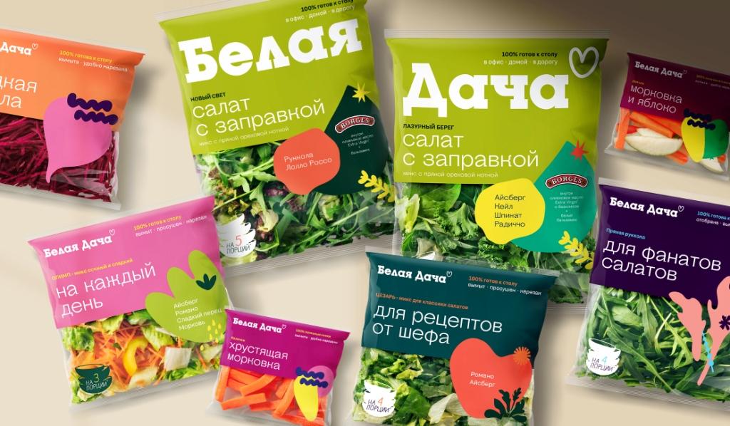 В обновленной коллекции Белая Дача 6 серий: «На каждый день», «Для рецептов от шефа», «Для фанатов салатов», «На большую компанию», «Салаты с заправками», «Удобные овощи», название которых помогают покупателю сразу выбрать подходящий ситуации потребления продукт. Большая прозрачная часть упаковки открыто демонстрирует качество листьев. Вкусовые дескрипторы рассказывают о гастрономических особенностях, есть информация о количестве порций в упаковке. По QR-коду можно увидеть все процессы, происходящие с салатами до упаковки, выбрать рецепт, обратиться в Патруль Свежести, задать вопросы.