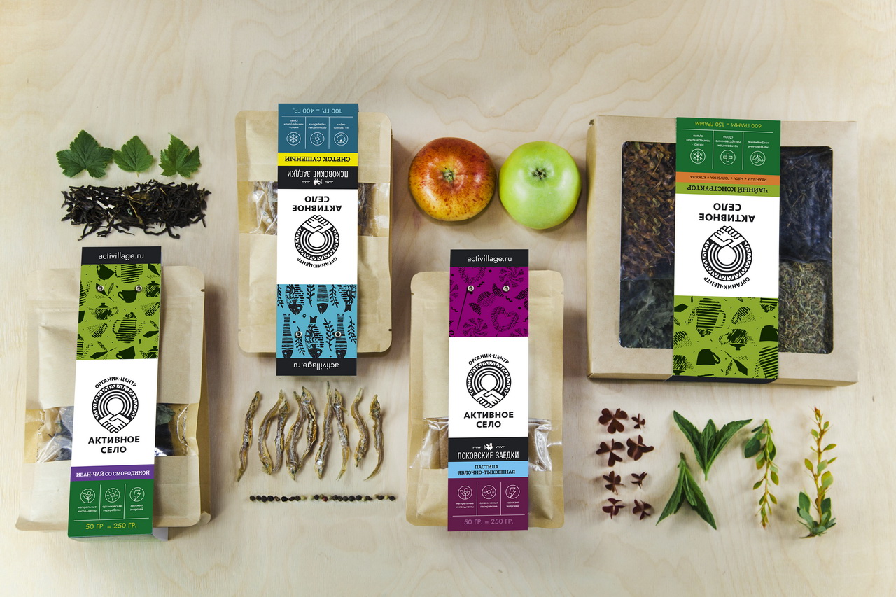 Органик-центр «Активное село» — это многообещающий социальный бренд, сохраняющий нашу русскую идентичность. На это сделан акцент при разработке дизайна.