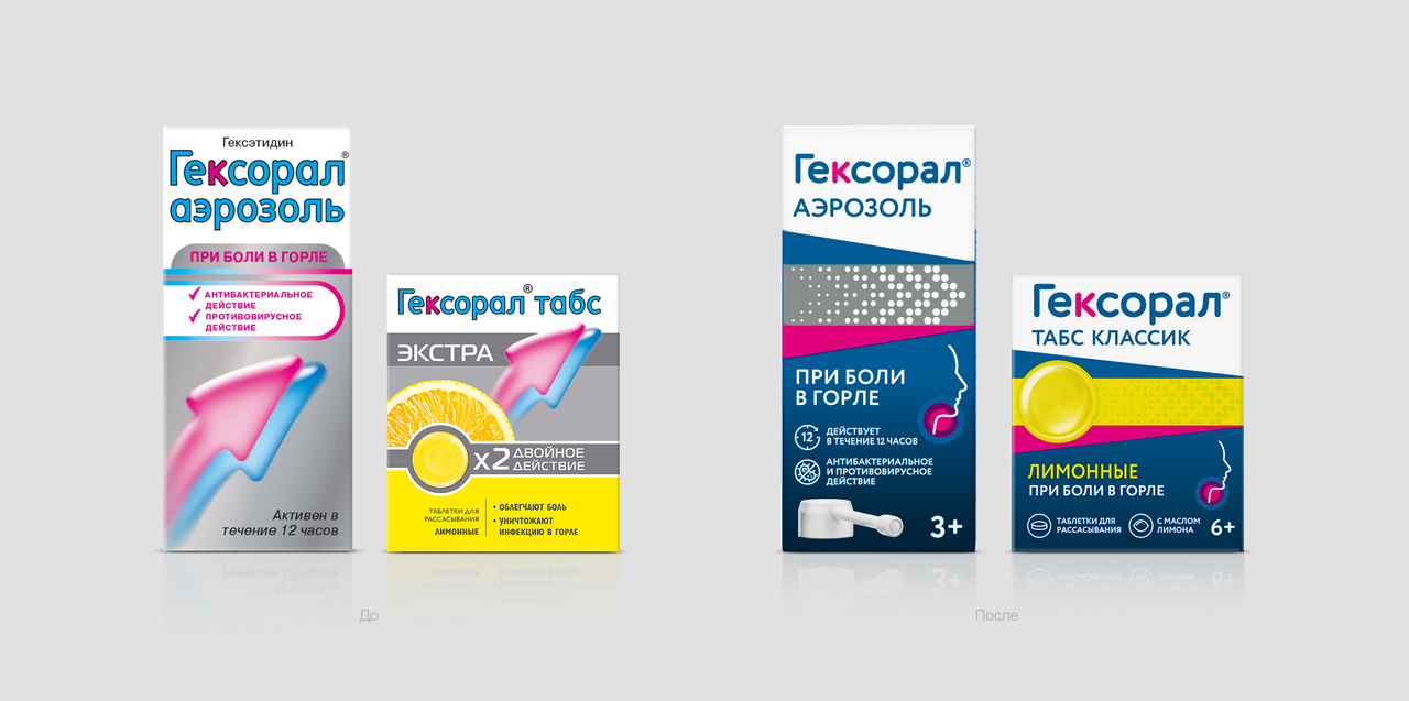 Гексорал® является безрецептурным препаратом, поэтому для бренда особенно важно, чтобы его упаковка позволяла выделяться на аптечной полке и в каталогах онлайн-аптек, давала достаточно информации о спектре действия лекарства, его характеристиках и способе применения. По оценке Deloitte, только за первое полугодие 2020 года рынок интернет-рекламы лекарств в России вырос на 43%, что усиливает потребность в визуальном решении, которое будет работать на фоне конкурентов в цифровом пространстве.