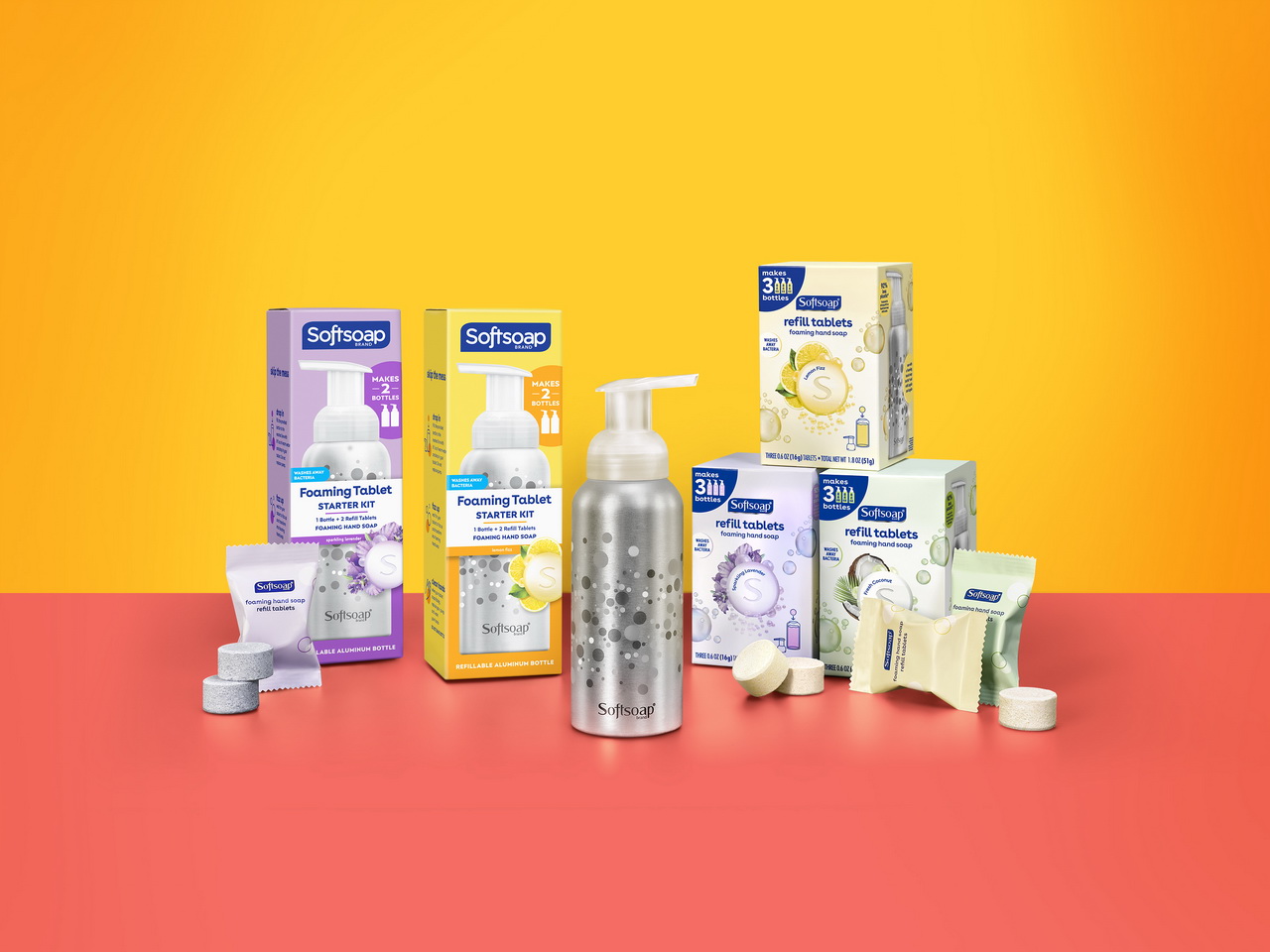 Будучи крупным национальным брендом, Softsoap решил сократить количество пластика, загрязняющего окружающую среду, выпустив пенящиеся мыльные таблетки. В начальный комплект с мылом входит стильная алюминиевая бутылка, которая на 71% содержит меньше пластика, чем традиционный флакон для жидкого мыла. Со временем пользователи новинки смогут сократить количество используемого пластика на 92%, по сравнению с традиционными наборами для повторного пополнения флаконов.