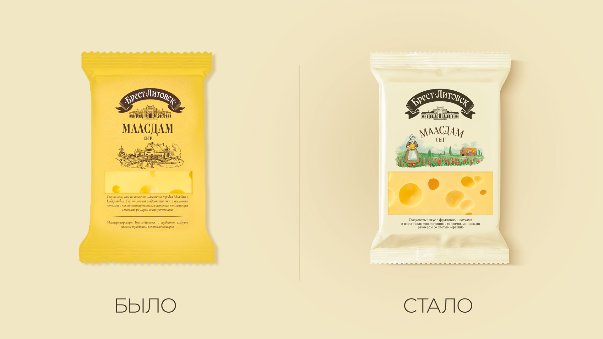 У бренда «Брест-Литовск» есть много элементов визуального стиля, которые стали одними из самых узнаваемых на российском рынке. Их нельзя было менять: это логотип, цвет фона (формирующий бренд-блок на полке), общий стиль иллюстраций. Все изменения должны были быть нюансными и одновременно дифференцирующими.