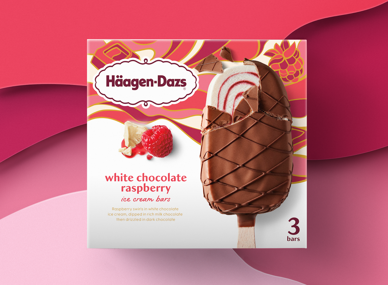 Спустя 60 лет после запуска первого премиального мороженого Häagen-Dazs, бренд решил переосмыслить передачу сообщения о роскошности своего продукта. Для проведения редизайна были приглашены специалисты Chase Design Group. Они помогли улучшить позиционирование бренда и внести в него немного веселья.
