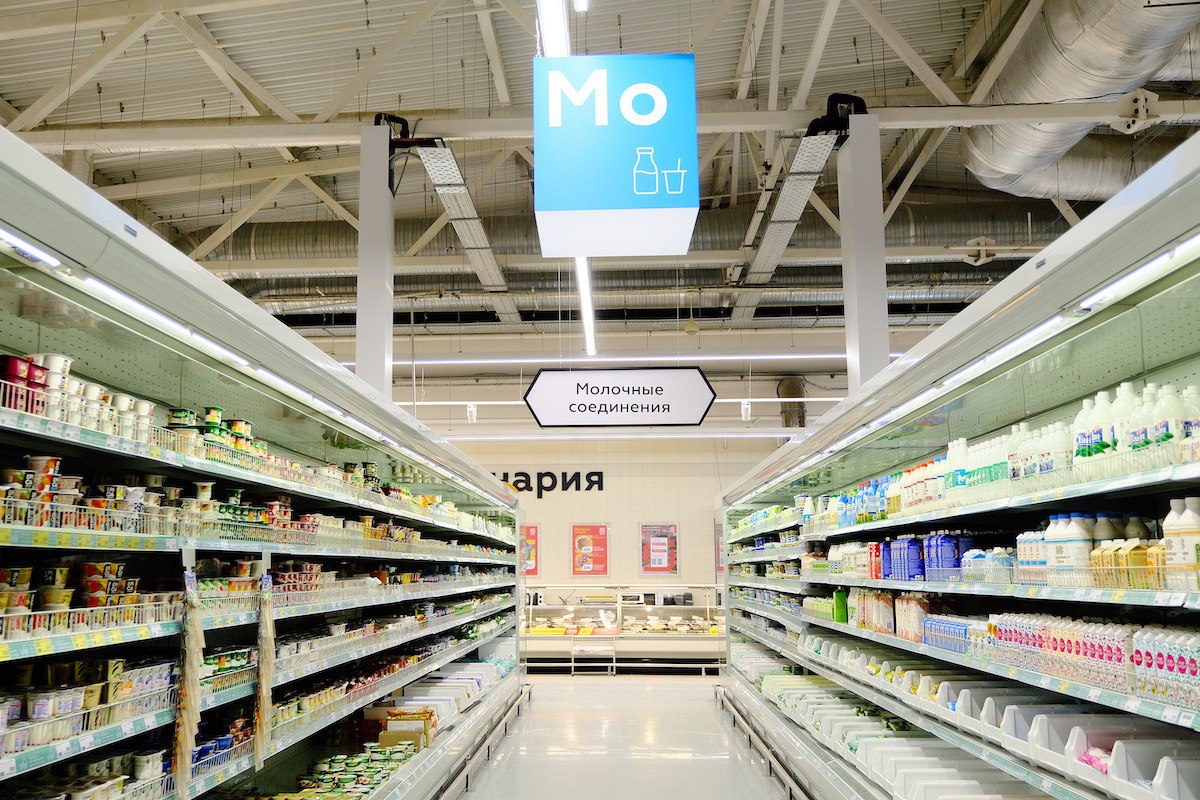 В обновленном суперсторе представлена продукция местных поставщиков — она обозначена специальными ценниками «Покупай тюменское». Основная часть товаров — мучные кондитерские изделия, замороженная продукция, мясная гастрономия, молочная продукция и безалкогольные напитки.