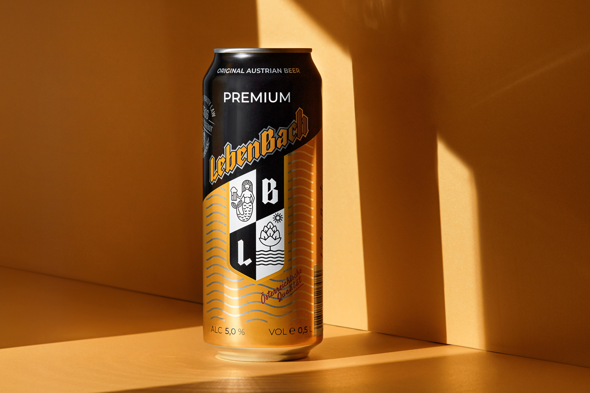 Lebenbach — благозвучное сочетание немецких слов. В переводе на русский название звучит как «река жизни», поэтому и в дизайне упаковки явно прослеживается тема воды и течения. В центре композиции — геральдический знак, рассказывающий о многолетней рецептуре австрийского пива. Изображенный на нем хмель транслирует натуральность продукта, а фановый образ русалки — весёлый характер австрийских пивных традиций.