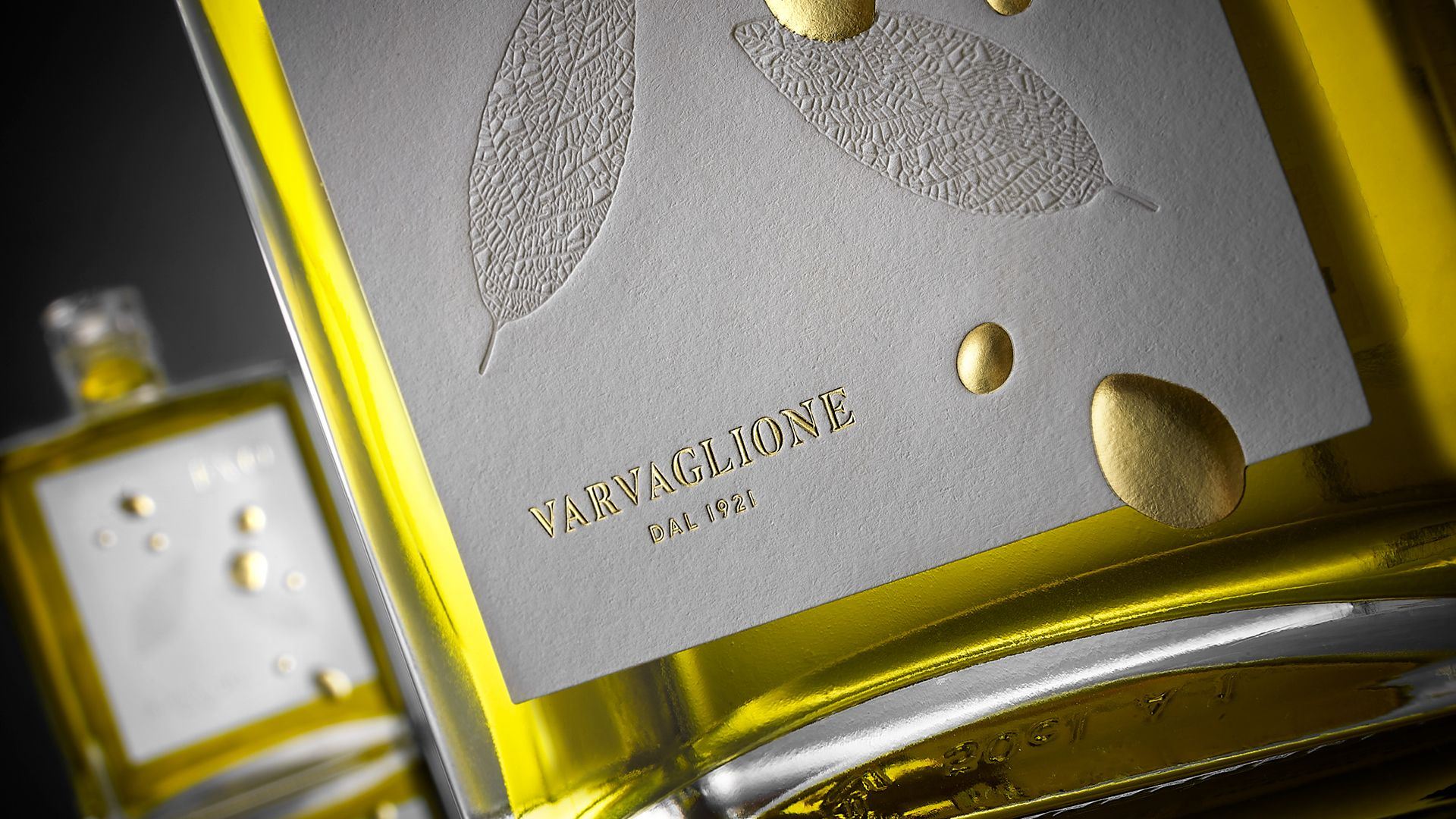 Для лимитированной серии коллекционных бутылок оливкового масла Varvaglione 1921 в студии Idem Design были разработаны удивительные этикетки, которые волшебным образом сочетают в себе инновационный дизайн и иллюзионизм. Для этикетки было придумано новое визуальное оформление с золотыми каплями, которые как будто стекают по бутылке, но при этом остаются на ней.