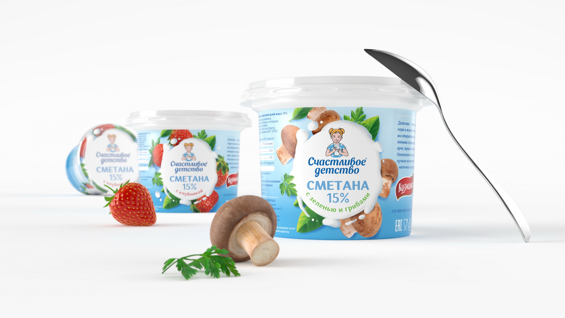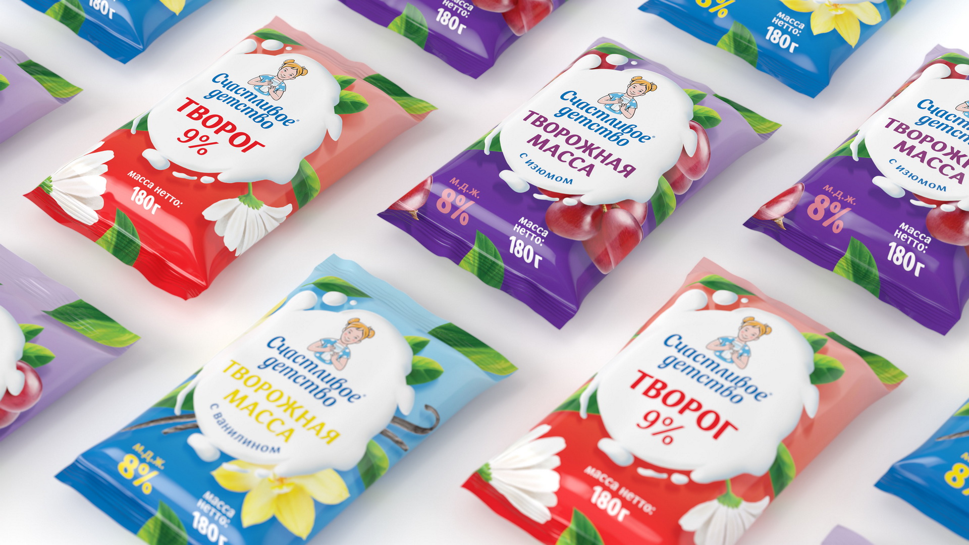 По заданию компании «Кузминки-молоко» в студии была проведена работа по обновлению визуального образа бренда молочной продукции «Счастливое детство».