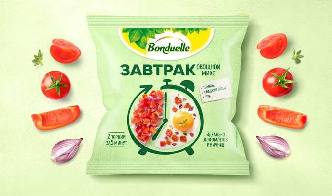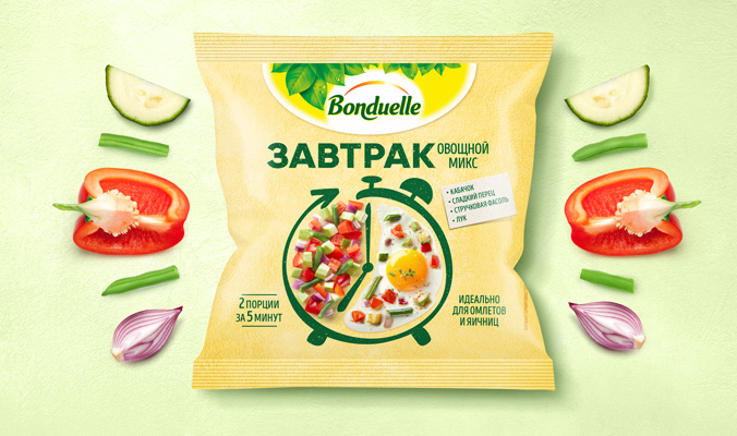 Овощной завтрак, который готов за 5 минут — залог хорошего настроения и здорового начала дня, и эту идею команда агентства воплотила в дизайне новой упаковки овощного микса, поддержав компанию Bonduelle в их миссии по внедрению инноваций с заботой о людях.