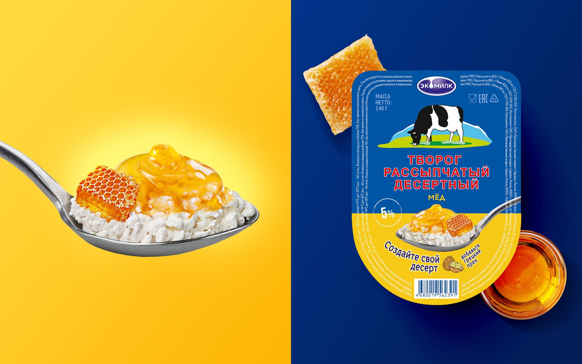 Взявшись за основную линейку и бережно адаптируя ее к другим категориям, дизайнеры начали работать над расширением ассортимента бренда Экомилк. Было важно сохранить узнаваемость бренда и его отличительные черты: темно-синий цвет, логотип, изображение коровы.