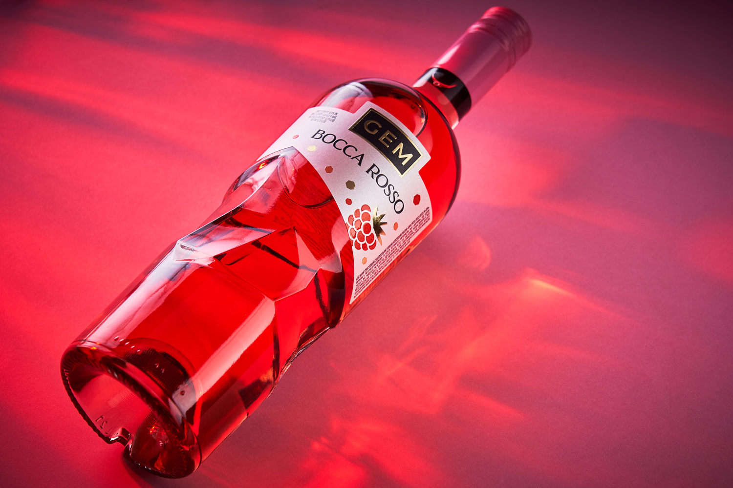 Фруктовые вина — это особая категория напитков, которая достаточно сильно отличается от классического вина, в том числе и в плане графического оформления. При кажущейся изначальной схожести, дизайн упаковки для фруктовых вин призван, прежде всего, указать на фруктовую составляющую напитка, дать понять потребителю, чем он отличается от традиционного вина. А учитывая тот факт, что основной аудиторией этой категории продуктов являются молодые люди, готовые к вкусовым экспериментам, упаковка должна выглядеть нестандартно и ярко. Именно с такими исходными данными студия взялась за разработку дизайна бутылки и этикетки для фруктовых вин Gem.