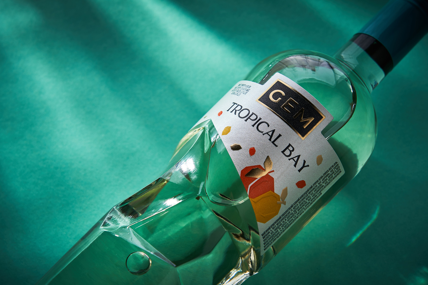 Первоочерёдной задачей при разработке дизайна упаковки для фруктовых вин Gem было создание бутылки уникальной формы, которая бы отражала главную особенность продукта и обыгрывала его название. Именно поэтому средний сегмент бутылки имеет сложную многоплановую форму, которая напоминает гранение драгоценного камня.