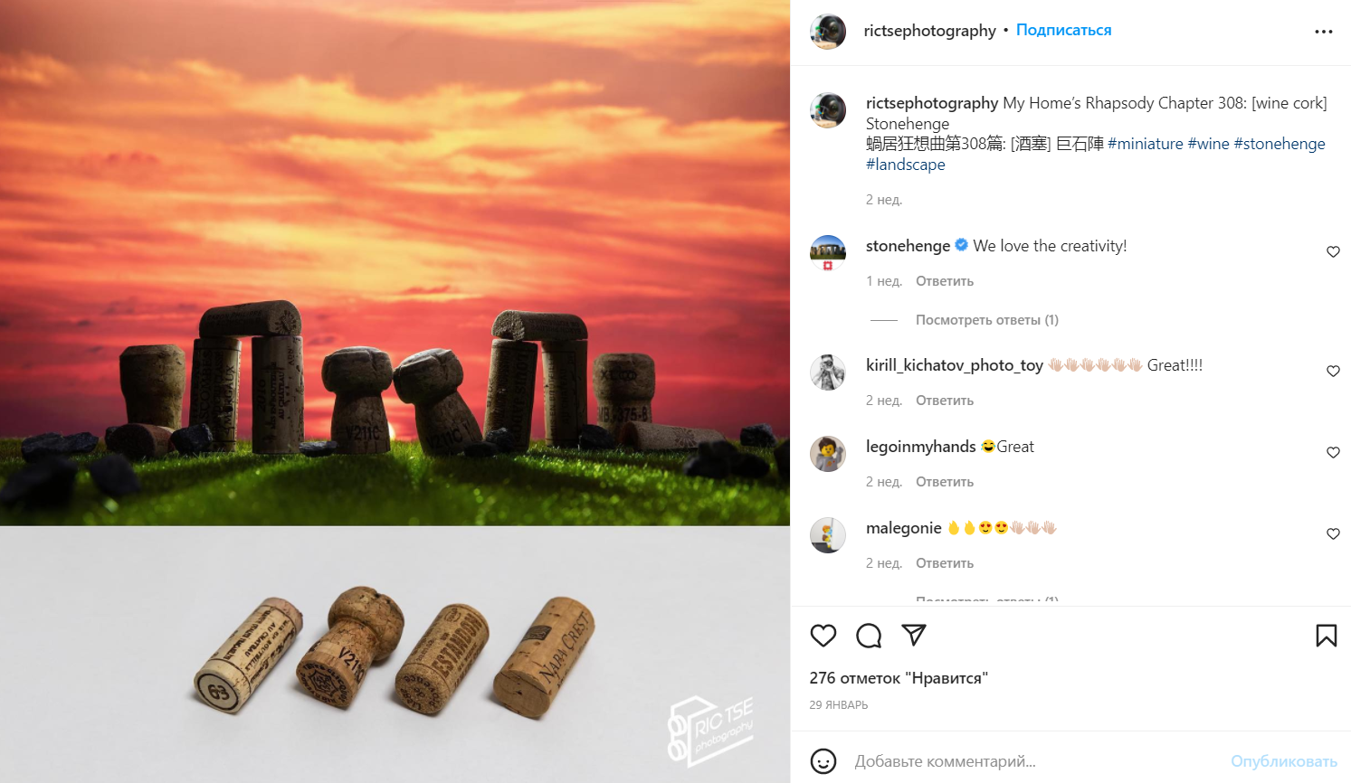 В проекте фотографа под названием Tourist Spots on My Table («Туристические места на моём столе») совмещается его интерес к пейзажной фотографии и миниатюрам, пишет Upakovano.ru. Ric Tse в своём интервью PetaPixel рассказал, что проект даёт ему возможность «путешествовать по всему миру с очень небольшими затратами».