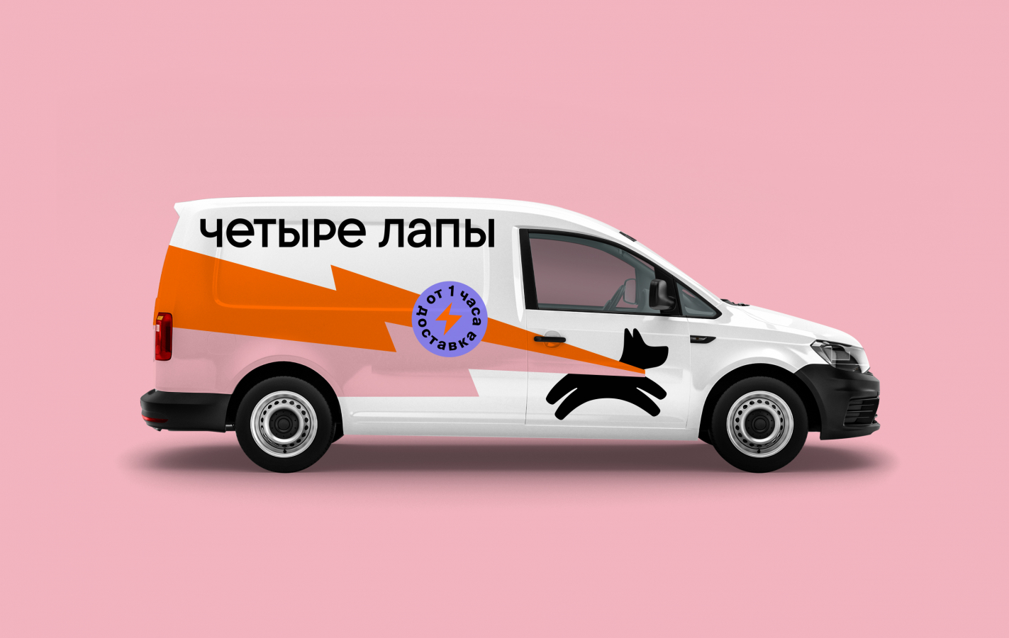 Основные изменения произошли в фирменном стиле сети: поменялся логотип и цвета. Главный центральный образ — собачка в логотипе сети — стал более современным и минималистичным. В логотипе бренда отражена главная суть — отношения между человеком и питомцем, где розовый цвет символизирует человека, а оранжевый — питомца. Также предложена цветовая отстройка для каждой услуги в экосистеме «Четыре лапы». Так, при оформлении зоомагазина будет использоваться сочетание оранжевого и розового, для ветклиники и кабинета здоровья — оранжево-голубая гамма, для услуги груминга — оранжево-сиреневая и так далее.