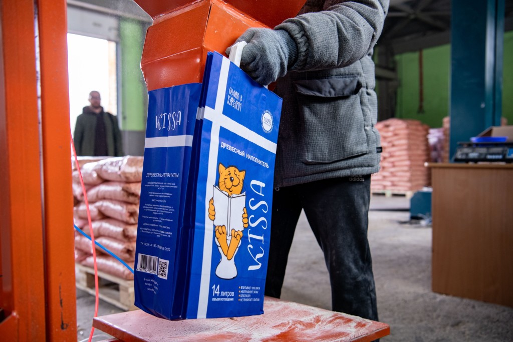 Петрозаводское предприятие «ЕКО» изначально занималось производством древесных гранул и топливных пеллетов, полтора года назад руководство фирмы переключилось на выпуск древесного кошачьего наполнителя и не прогадало: дела пошли в гору.Древесный наполнитель Kissа — по-настоящему карельский продукт. Опилки из экспортных пород карельской хвойной древесины поставляет Соломенский лесозавод. Упаковку для всей линейки делает Сегежский ЦБК.