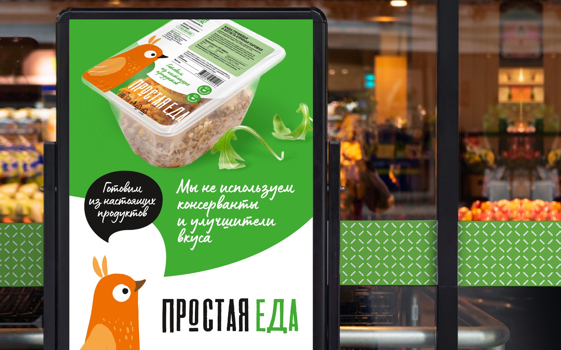 Новый дизайн привлекает к себе больше внимания за счет яркого бренд-персонажа, фирменной выкладки и не сливается с другими SKU, а создает свой бренд-блок, что помогает продукту выделяться в ритейле среди конкурентной продукции. Не секрет, что значительная часть выручки сетей приходится на готовую еду, особенно в крупных городах, и этот тренд переходит на регионы. Бренд «Простая еда» встретит этот тренд во всеоружии, укрепляясь и поддерживая свои лидерские позиции в своем регионе и близлежащих областях.