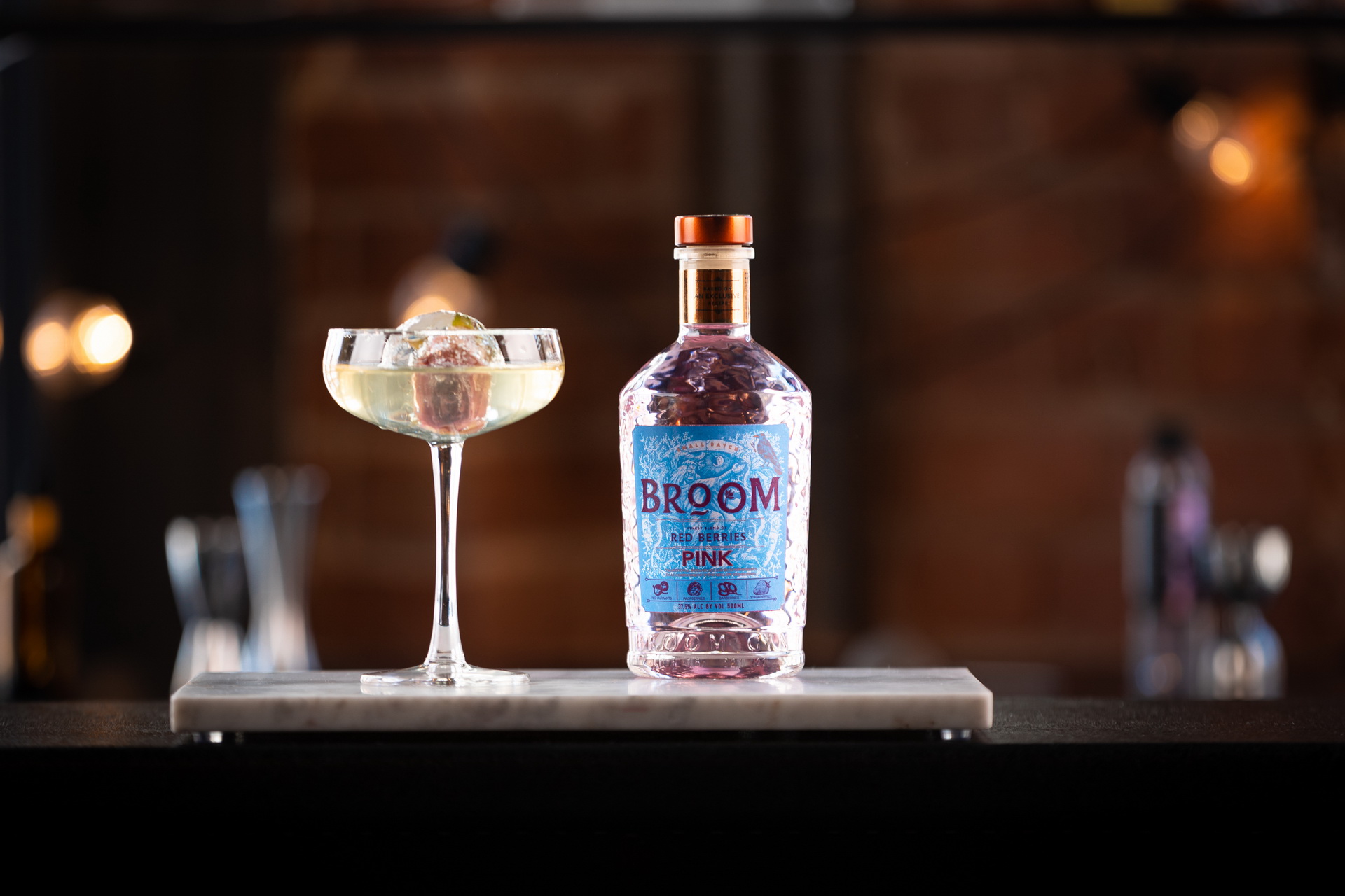 Линейка BROOM представлена двумя SKU: классическим сухим джином без добавления сахара — BROOM Dry (41,7%) и розовым — BROOM Pink (37,5%) с россыпью свежих тонов и естественной сладостью ягод красной смородины, малины, клубники, барбариса, которые гармонируют с освежающими нотами можжевельника.