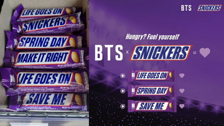 Батончики получили упаковку в узнаваемых фиолетовых цветах группы, а на лицевую сторону поместили названия самых известных хитов, включая Life Goes on, Make It Right, I'm Fine, Spring Day и т.д.