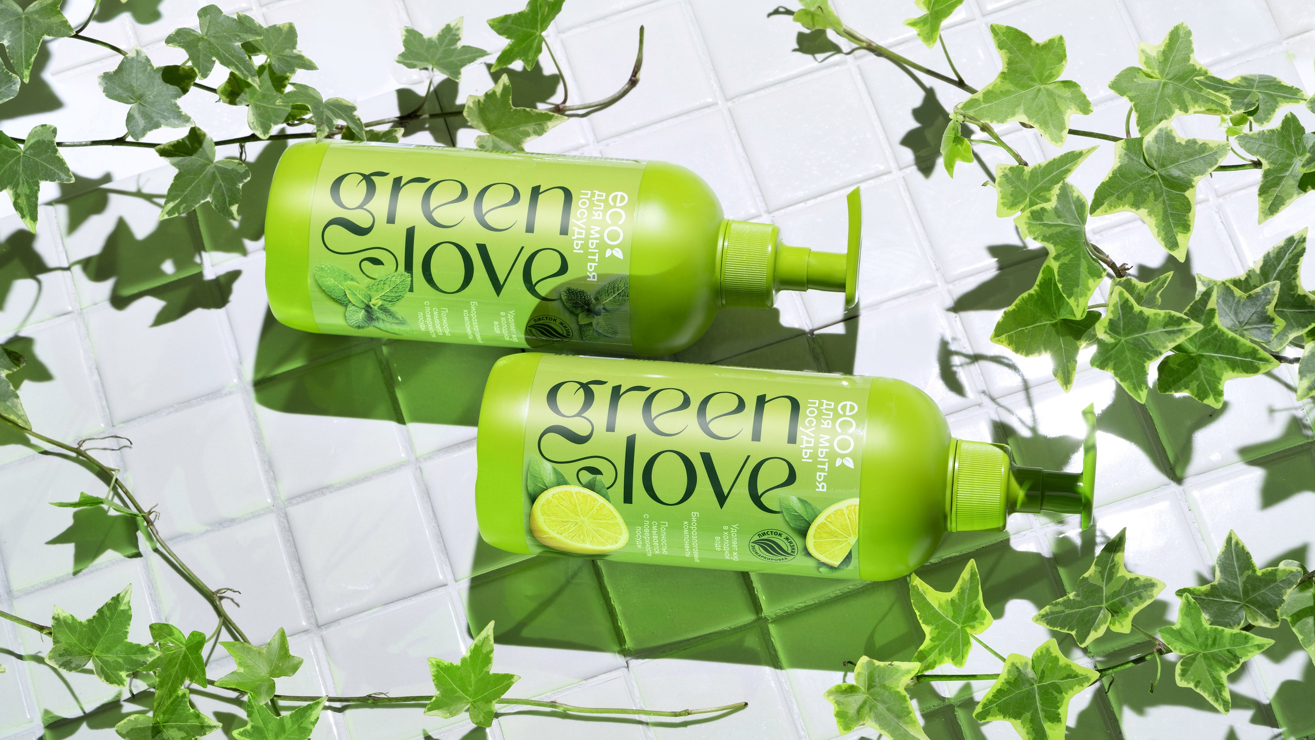 Green Love — эко-бренд бытовой химии. Сертифицированные экологичные средства по уходу за домом созданы на основе растительных компонентов натурального происхождения и предназначены для ежедневного применения и поддержания чистоты в доме. Это подлинный эко-бренд с прозрачной историей, что важно было отразить в новом дизайне.