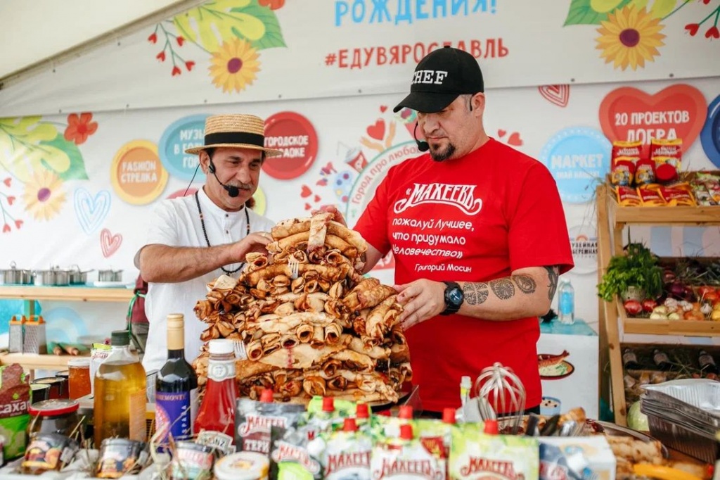 Григорий Мосин, бренд-амбассадор ТМ «Махеевъ» и бренд-шеф городского пикника, приуроченного к 1012-летию Ярославля, установил гастрономический рекорд! Кульминацией кулинарно-исторического шоу, проходившего на главной сцене фестиваля «ПИР на Волге» 20 августа, стало приготовление знаменитого блинника — вкусного бренда Ярославля. Но Григорий Мосин не просто испек «тот самый» блинный торт. Он установил рекорд №1 в книге событийного туризма России. Подал традиционное старорусское блюдо в виде дженги, каждый элемент которой (а всего их 250!) — тонкий блин, свернутый в трубочку.