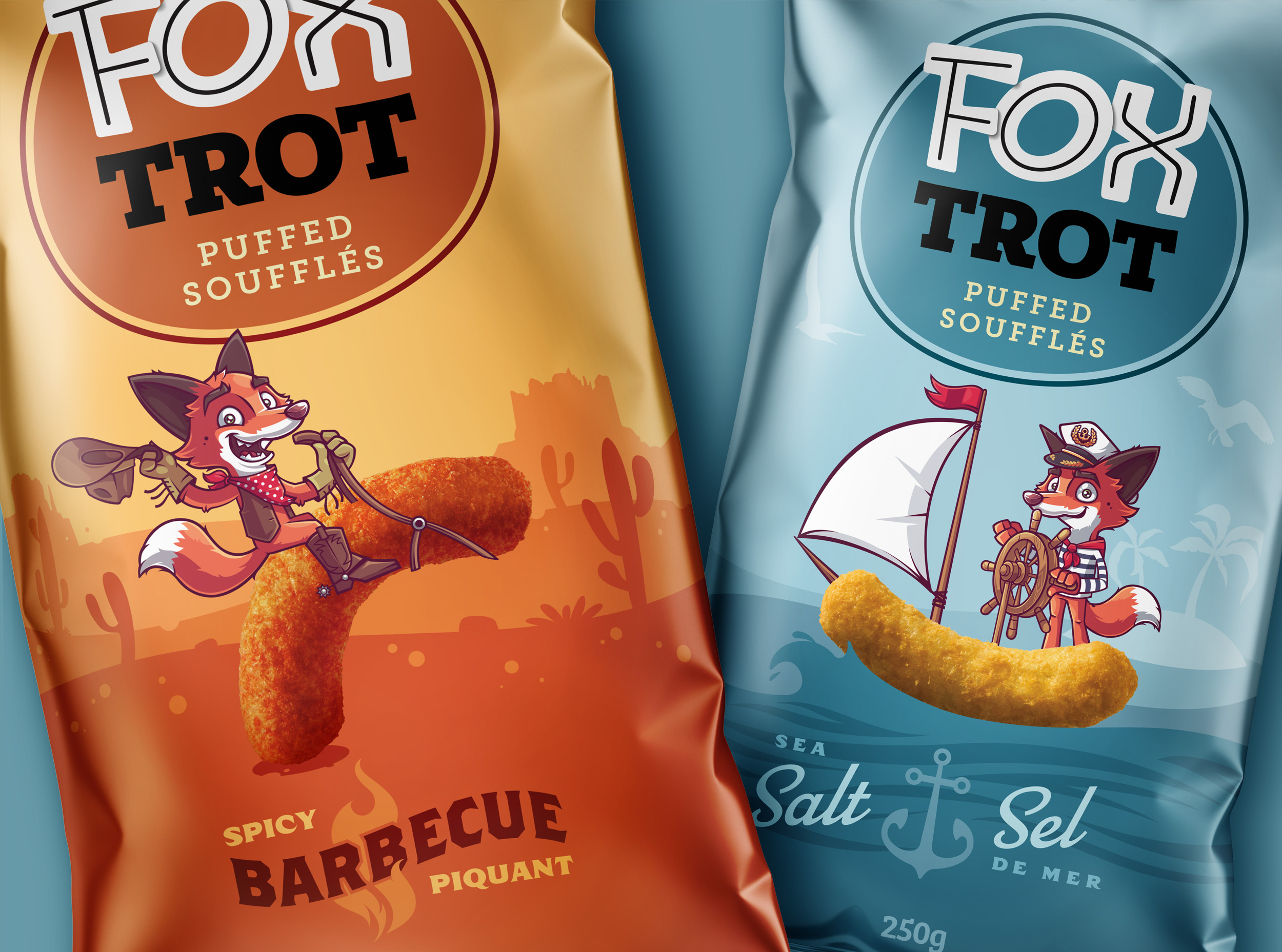 Бренд Fox Trot идёт дальше традиционных вкусов для снэков и использует стратегический процесс при их разработке. Агентство Roberge Design & Branding было приглашено для создания названия продукта, его характера и визуальной территории бренда.