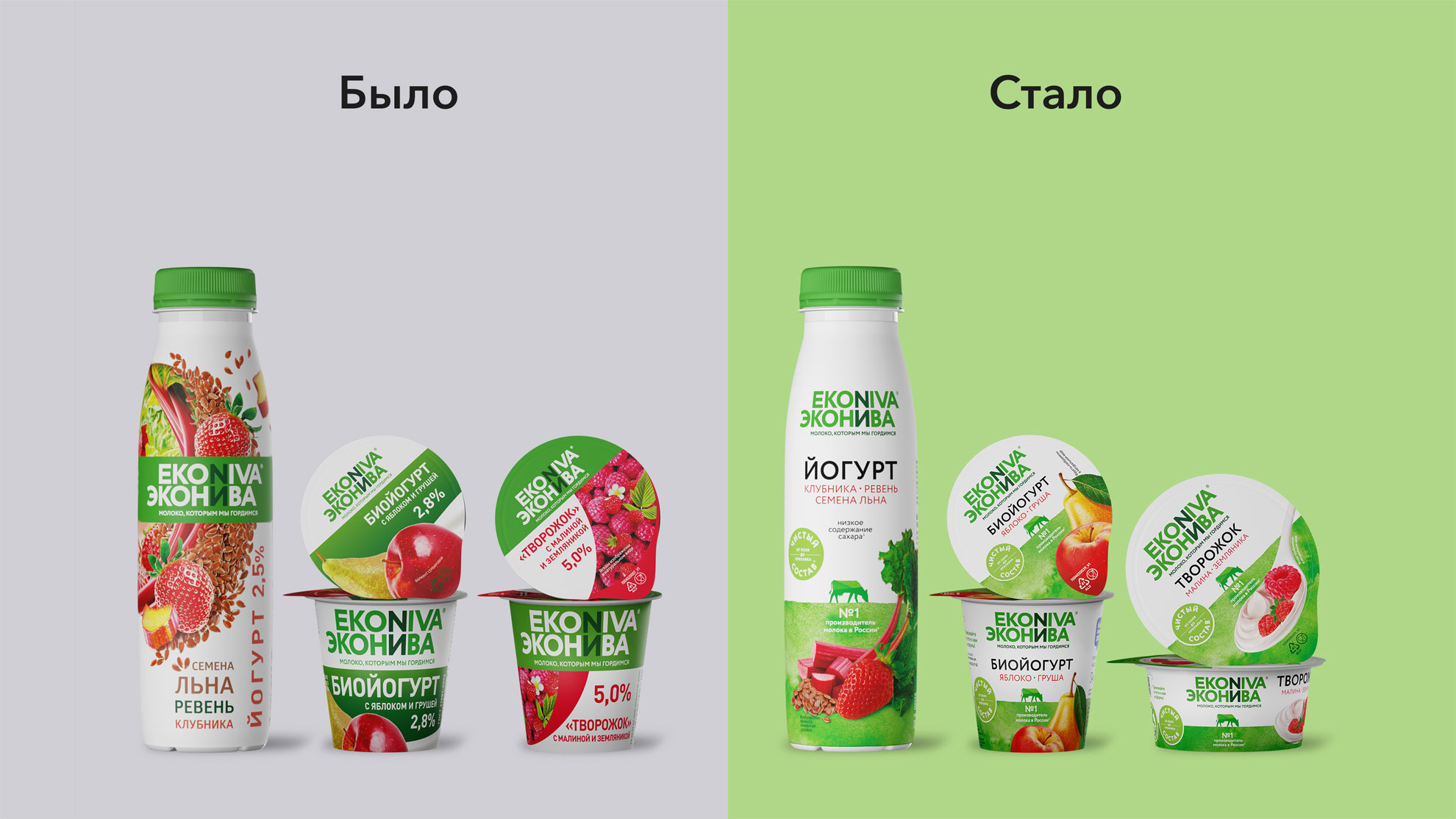 Являясь крупнейшим производителем сырого молока в России, «ЭкоНива» бережно хранит традиции производства натуральных продуктов из настоящего молока. Честный состав — дань уважения компании молоку как удивительному дару природы. Поэтому перед специалистами группы и партнерами по проекту стояла задача — создать актуальный дизайн для йогуртно-десертной линейки современного молочного бренда, при этом отразив ключевые принципы работы группы. Так, все продукты от «ЭкоНивы»: 1) производятся только из молока высшего сорта с собственных ферм, 2) не содержат искусственных красителей и консервантов, 3) имеют натуральный вкус, 4) всегда высокого качества благодаря контролю производства «от поля до прилавка». Также было важно показать, что натуральное и полезное может быть действительно вкусным.