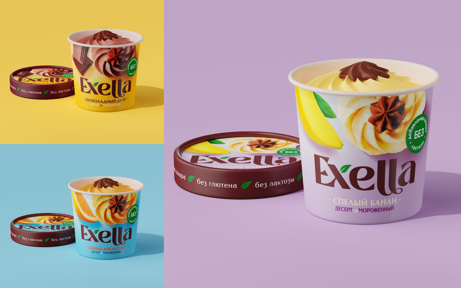 Линейка десертов вышла яркой, жизнерадостной и очень заметной на полке. Exella — безопасное удовольствие без углеводных скачков и вредного холестерина, десерт, который заряжает энергией, сохраняя фигуру.