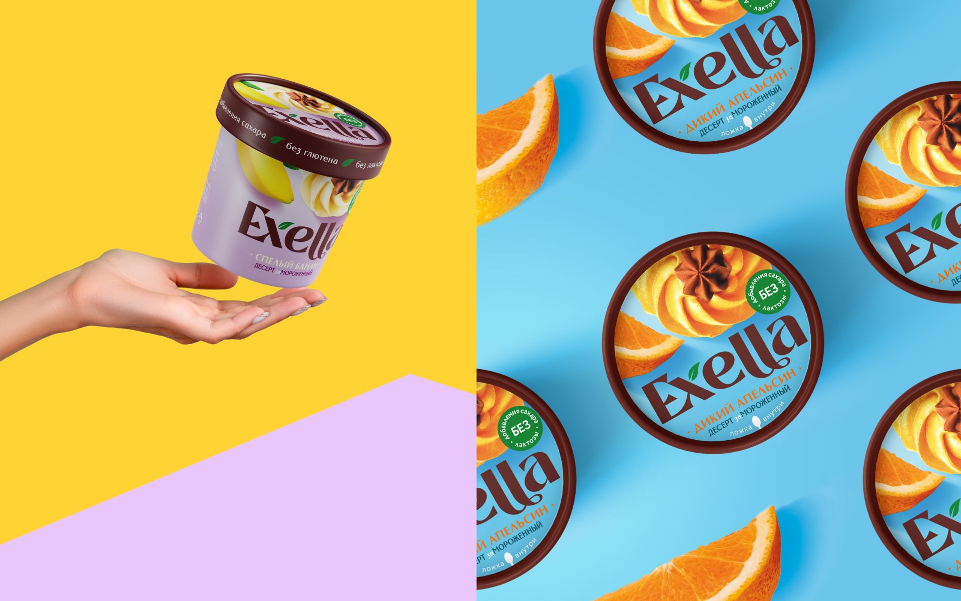 Первым шагом в работе над проектом стала разработка нейминга. Придуманное название Exella — производное от excellence (с англ. «превосходный») — отлично передает концепцию продукта. Цель бренда Exella — изменить вкусовые привычки людей на более полезные и внедрить их в жизнь на постоянной основе.