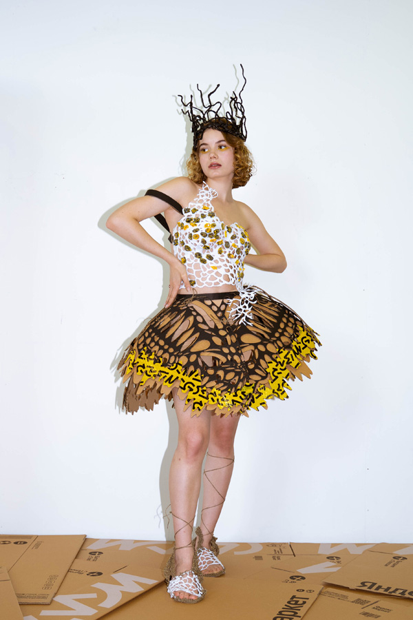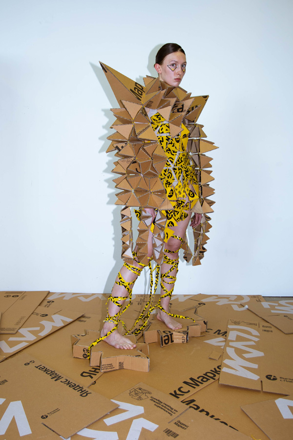 В создании коллекции приняли участие 7 студенческих групп из программ высшего образования Introduction, Pre-Foundation Art & Design и Foundation Art & Design БВШД. Студенты изготовили 7 образов из подручных материалов — коробок и скотча — которые используются для доставки заказов Яндекс Маркета, а также из других канцелярских принадлежностей. Таким образом проект стал творческим вызовом для молодых дизайнеров и платформой для размышлений на тему осознанного потребления.