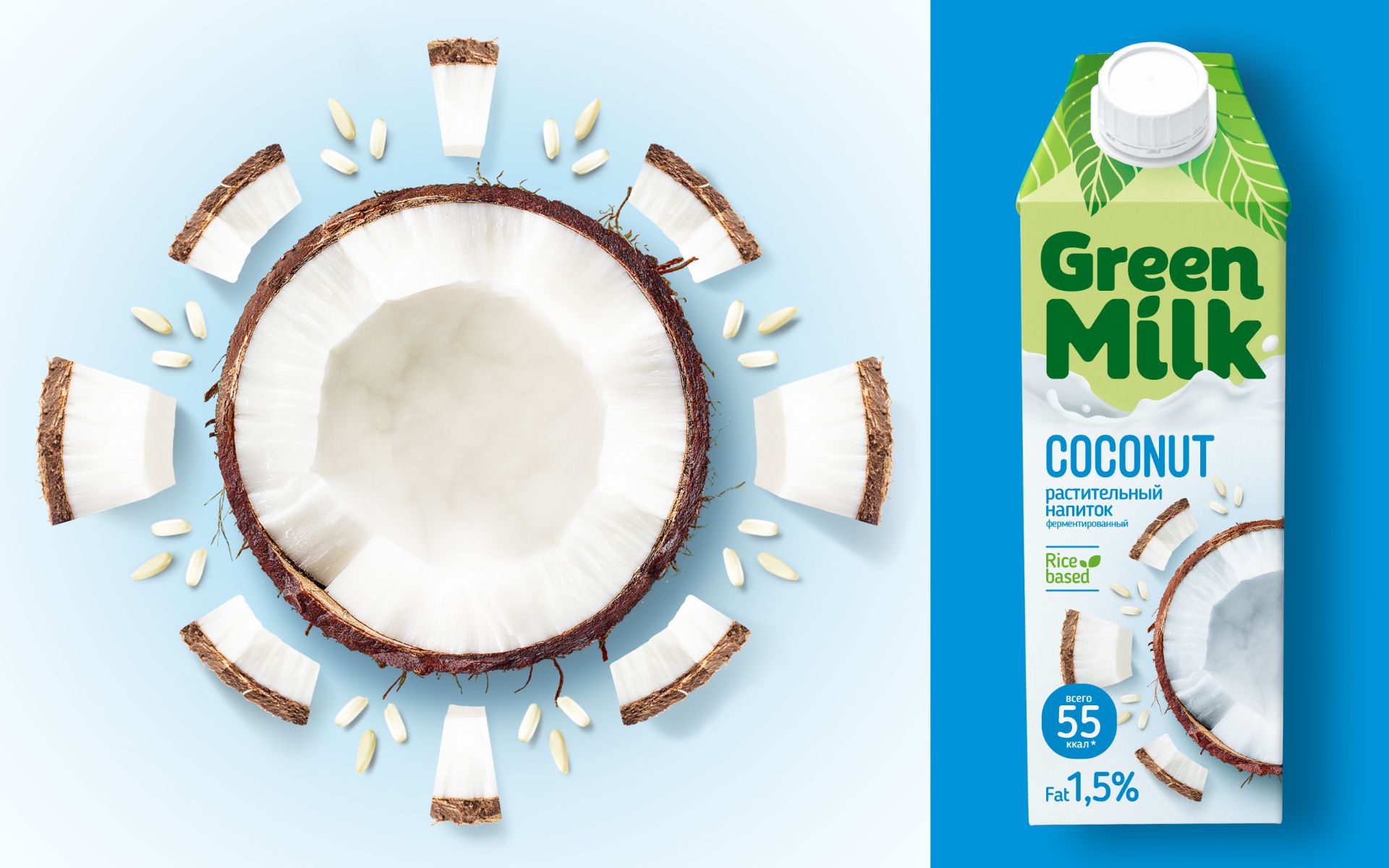 Бренд Green Milk вышел на рынок в 2018 году и стал одним из лидеров в категории «Растительное молоко». Но с течением времени и появления на рынке новых конкурентов в категории было принято решение о редизайне, в результате которого линейка расширилась с четырех до семи наиболее востребованных в кофейнях артикулов. Были разработаны новые вкусы — банан, ваниль и овес, а также обновлена рецептура напитков на основе кокоса, миндаля, сои и лесного ореха.
