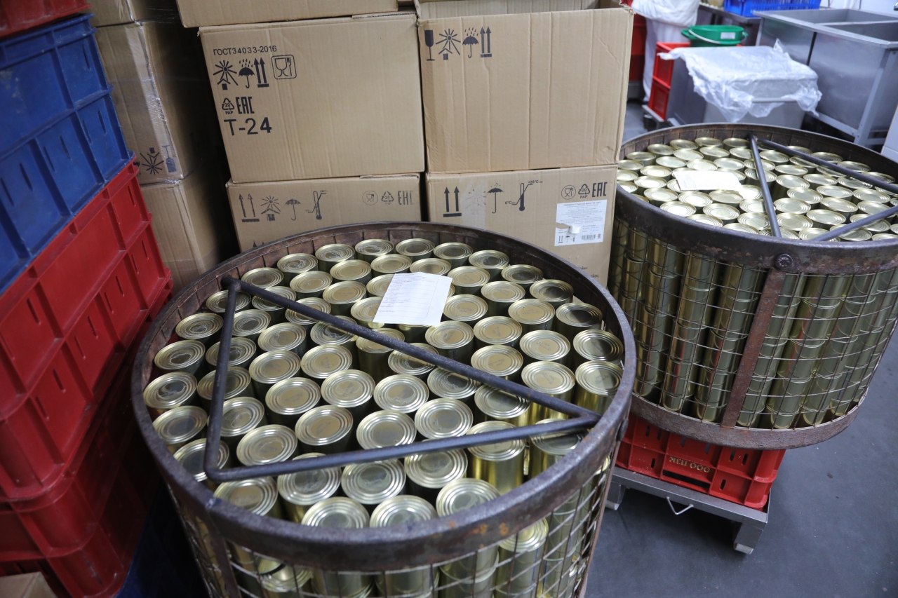 Рецептура составлена местными технологами. Все ингредиенты прошли тщательный отбор. Тушенка в банки раскладывается автоматически, в час здесь производят 2 400 банок. А вот плов и супы — это по-настоящему ручная работа. Все ингредиенты в баночки раскладываются слоями.