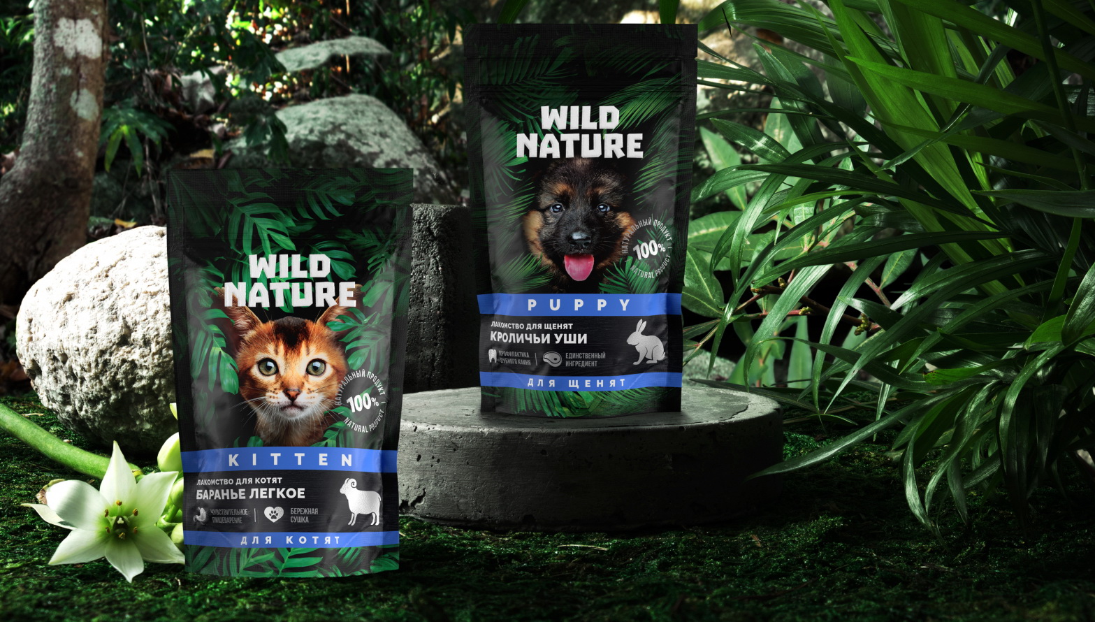 Сергей Воробьёв, креативный директор DDC Group: «Простой и легко запоминающийся нейм «Wild Nature» имеет сразу несколько смыслов. В значении «живая природа» он говорит нам о натуральности и пользе товаров. В значении «дикая натура» — о природных инстинктах питомцев».
