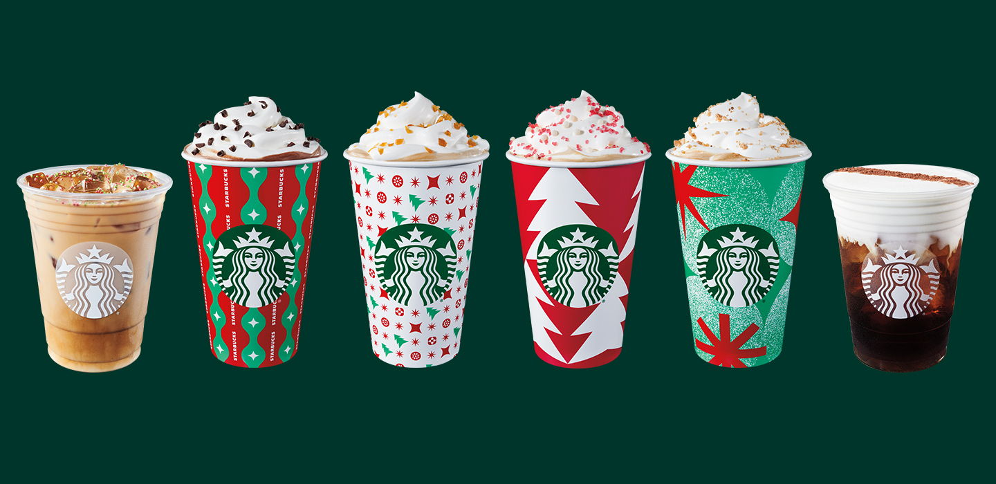 Хэллоуин прошёл, а значит настало время подготовки к новогодним праздникам. Starbucks по традиции в это время представляет дизайн новогодних стаканчиков и меню сезонных напитков. В этом году это 25-ый запуск лимитированной серии праздничных стаканчиков. В сезонном меню появились напитки мятная мокка, латте карамель-брюле, латте каштан-пралине и ледяное латте со вкусом сахарного печенья и миндального молока, без содержания молока.