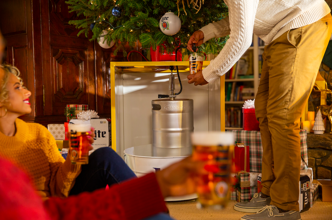 Пришло время для товаров, посвящённых Рождеству. Пивной бренд Miller Light решил отметить приход нового праздничного сезона возвращением вязаных изделий, ёлочными игрушками с пивом, а также новинкой: подставкой для ёлки с пивной бочкой.