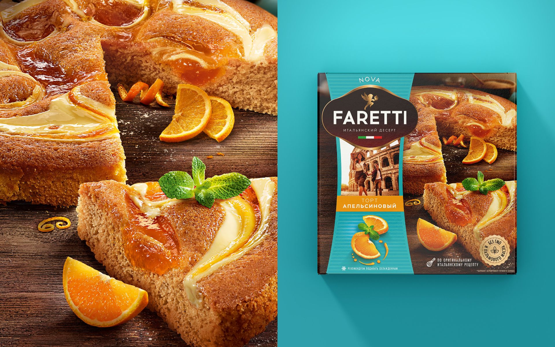 Faretti — это линейка изысканных итальянских десертов состоящая из бисквитных тортов и пирожных с кремовыми и фруктово-ягодными начинками. Взяв за основу оригинальные рецепты итальянских мастеров-кондитеров, совместив их с собственными инновационными разработками, компания выпустила на российский рынок серию итальянских десертов.