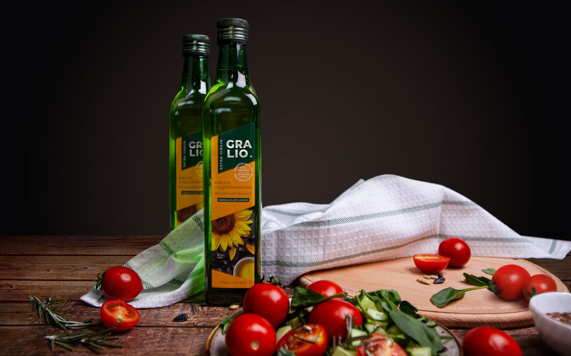 Gralio — бренд натуральных масел Extra Virgin, рожденный на Алтае. Масло производится методом холодного отжима. Это позволяет сохранить не только насыщенных вкус и аромат, но и уникальный витаминный состав семян подсолнечника.