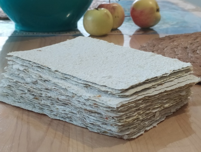 Сейчас Светлана Войтова вручную отливает новую бумагу для открыток, постеров с натуральными растениями и надписями-пожеланиями. Для изделий берется уже использованная бумага, макулатуру ей приносят родственники и друзья.