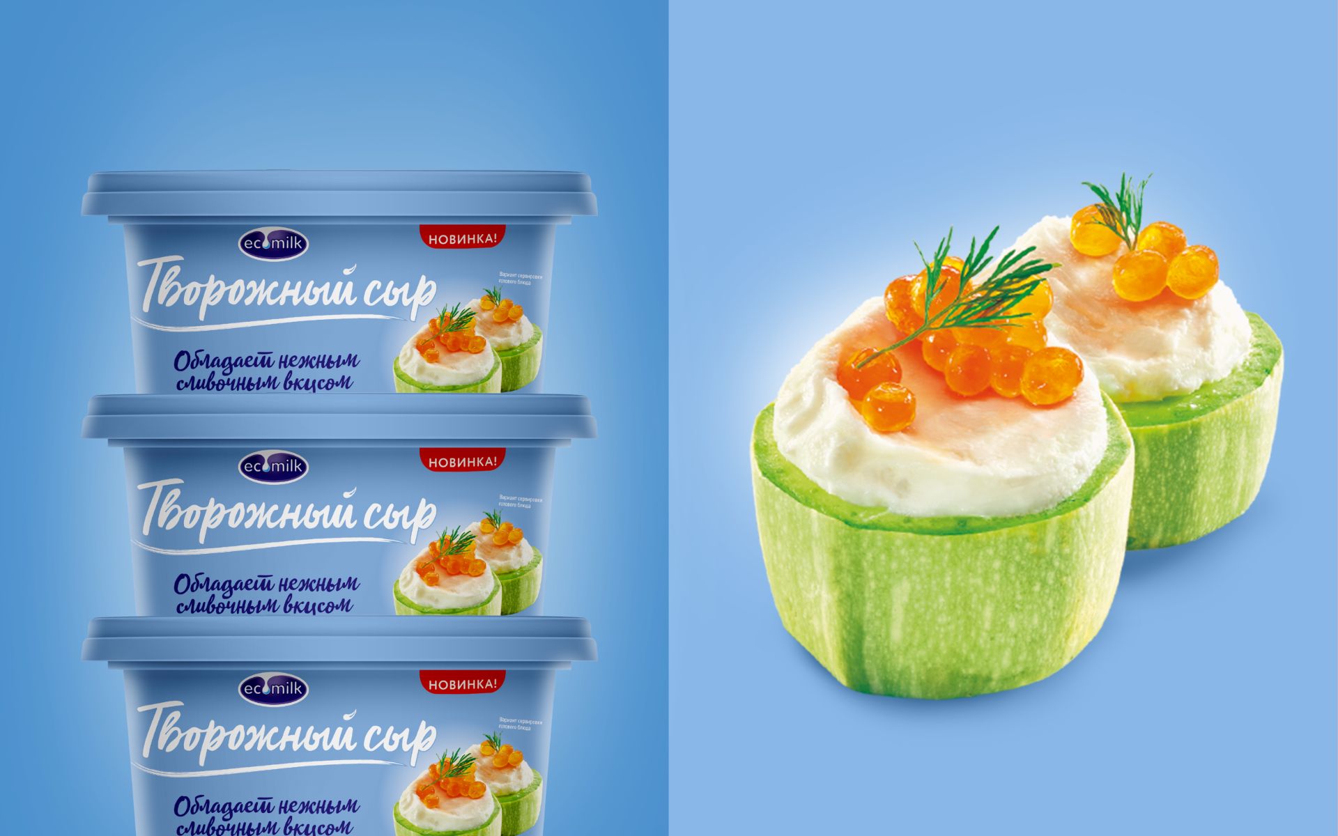 Одним из таких направлений стала линейка мягких творожных сыров. Первым был разработан крем-чиз для приготовления домашних кулинарных шедевров, таких как роллы и чизкейки. Также Экомилк запустила производство творожного сыра для бутербродов.