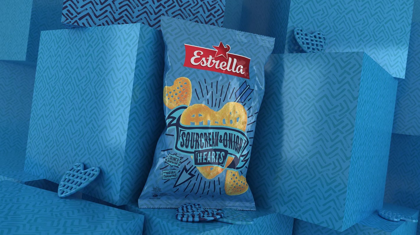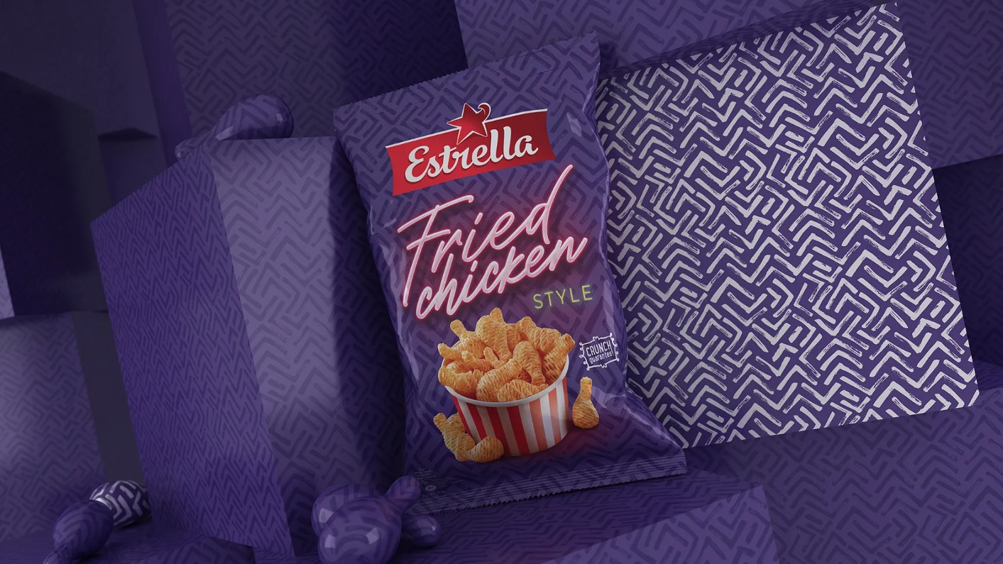 Целью обновления упаковки чипсов Estrella было получить больше внимания на розничном прилавке. Целевая аудитория бренда — молодые и весёлые покупатели, которые любят пробовать новое и постоянно ищут новые способы самовыражения.