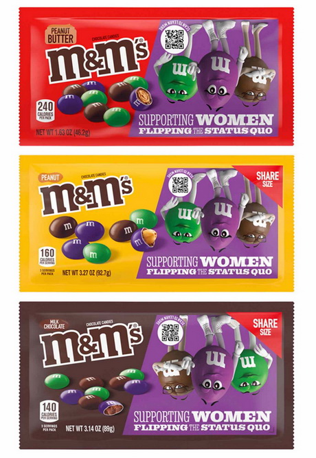 Бренд M&M’s запустит в продажу «женское» шоколадное драже — инклюзивную упаковку десерта украсят маскоты Фиолетовая, Коричневая и Зелёная. Они изображены вверх ногами, чтобы подчеркнуть важность женщин-инфлюенсеров, которые меняют мир. Выпуск коллекции приурочен к предстоящему Международному женскому дню, который отмечается 8 марта.