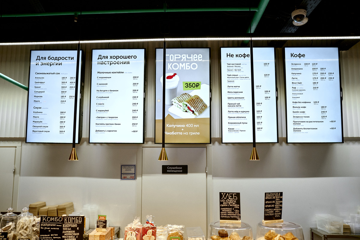 Кафе работают без официантов в формате free flow («свободное движение». — Forbes), покупателям предлагают приобрести кулинарию на развес. В меню более 130 позиций: вторые блюда, салаты, закуски, выпечка, сэндвичи, десерты и различные напитки. Средний чек — 350 рублей.
