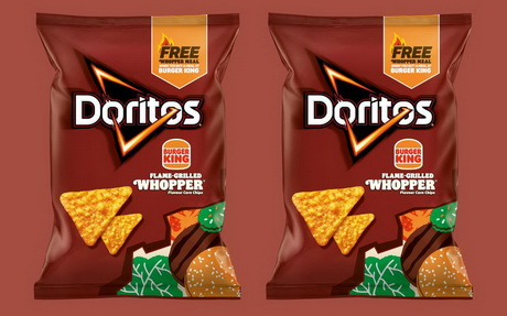 Бренд кукурузных чипсов Doritos и фастфуд-сеть Burger King представили в Великобритании новый вкус чипсов Flame-Grilled Whopper Doritos. Воппер известен своим дымным ароматом обжаренной на гриле говяжьей котлеты, томатами, луком и маринованными огурчиками. В отличие от классического бургера Воппер, чипсы не содержат большого количества жира, соли и сахара, и подходят для вегетариацев.