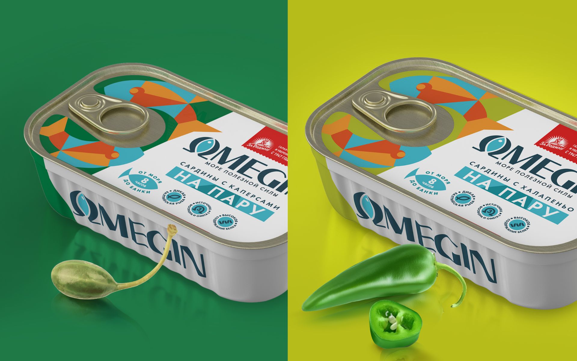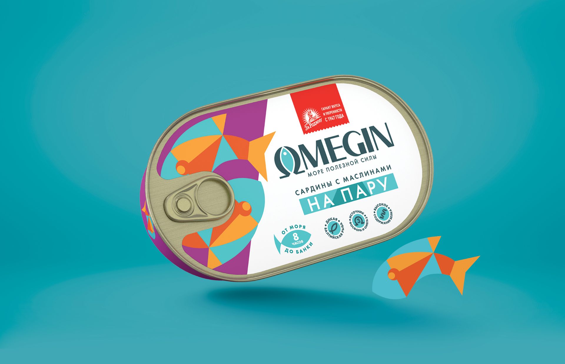 В рамках воркшопа дизайнеры Getbrand разработали основное позиционирование бренда «За Родину» — «Гарант вкуса и уверенности с 1947 года», и также позиционирование для саббрендов, одним из которых стал новый бренд «Omegin» — бланшированные сардины в масле, содержащие большое количество омеги 3 и витамина Д. Поскольку слово «бланшированные» не всем понятно, само по себе длинное, появляется крупная надпись «НА ПАРУ», что позволяет 1) сделать продукт понятнее 2) еще лучше выделиться на полке 3) поднять ценность — еще раз показать, что данная продукция находится в современных трендах правильного питания.
