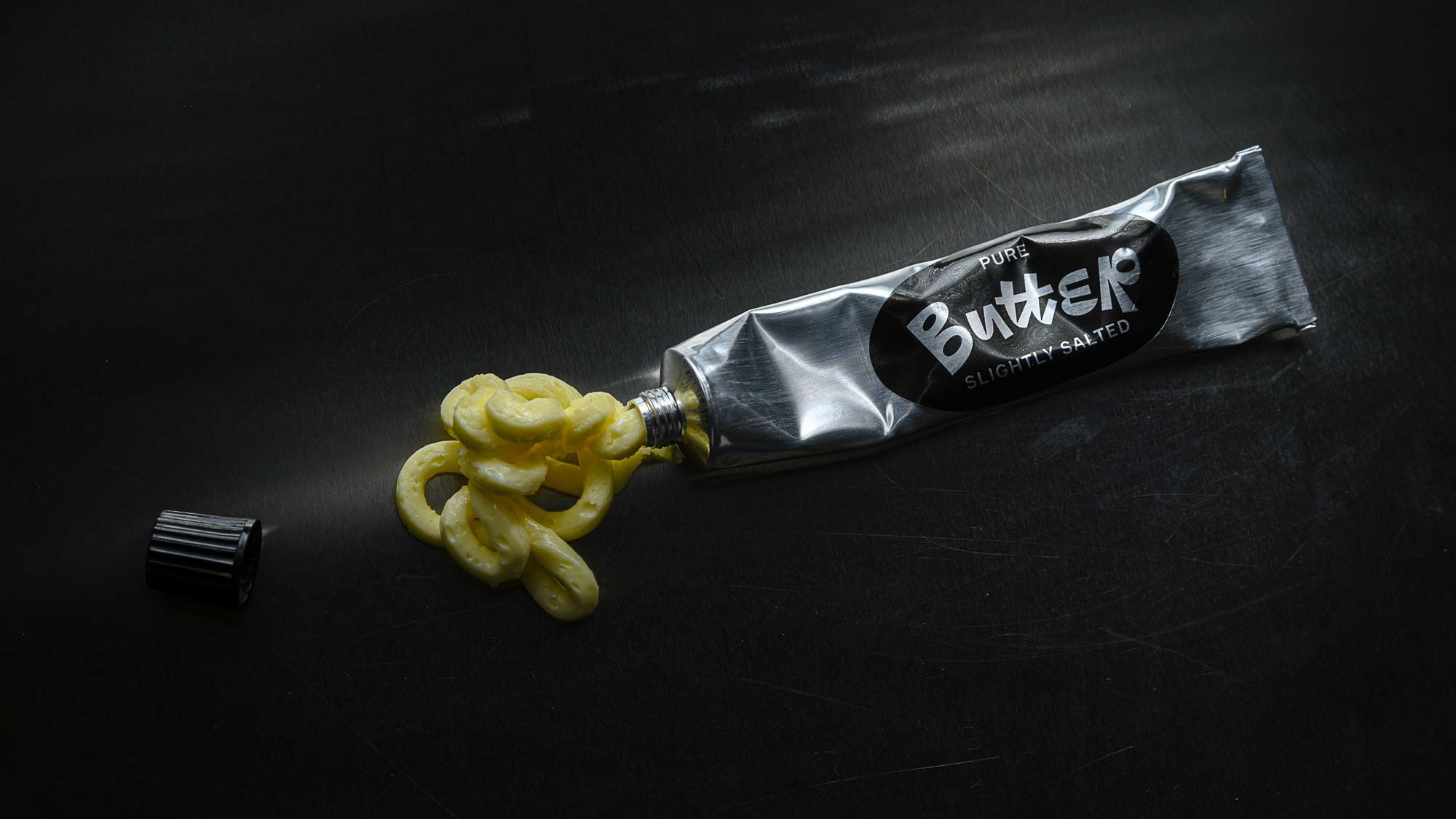 Так появилось сливочное масло в алюминиевом тюбике. Технология трафаретной печати на картонной упаковке для тюбика добавляет продукту эксцентричности, пишет Upakovano.ru. А тюбик внутри коробки удивит любого своим форматом.