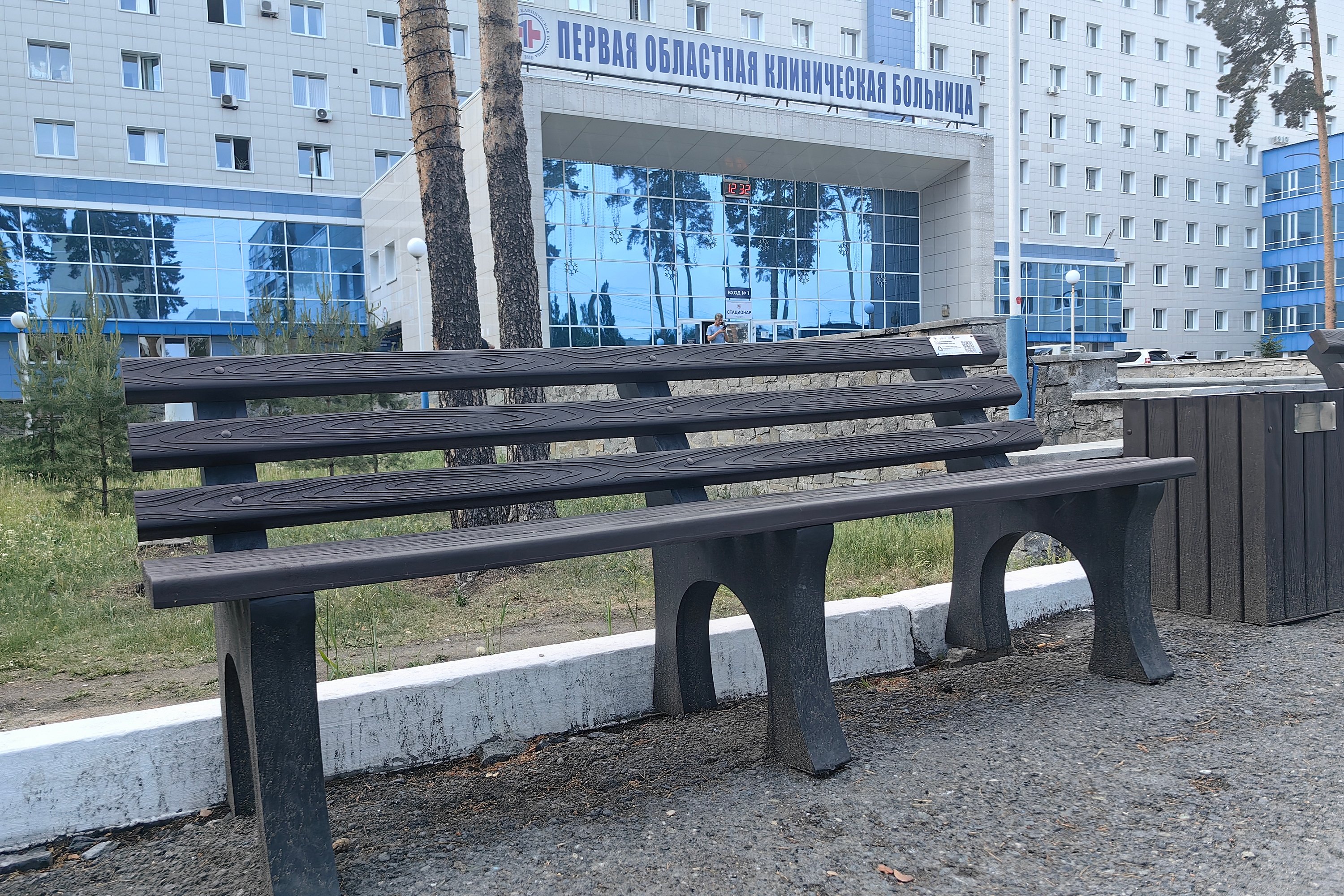 На аллее у стационара Свердловской областной клинической больницы № 1 (СОКБ № 1) появились скамейки и урны. Они изготовлены из переработанного пластика, который собрали сотрудники медучреждения.