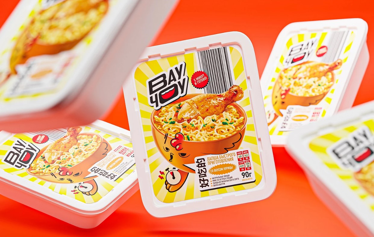 «Особое внимание в дизайне мы уделили иллюстрациям: тарелки перевоплотились в «сумасшедших персонажей», а инструкция по приготовлению на торце изобразилась по примеру азиатских рецептов. Мы произвели нестандартное клеймирование: объемные яркие стикеры, разговаривающие напрямую с покупателем, которые за счёт своего сходства диалогов в комиксах придали дизайну особую динамику и дружелюбность», — говорит в релизе от агентства.